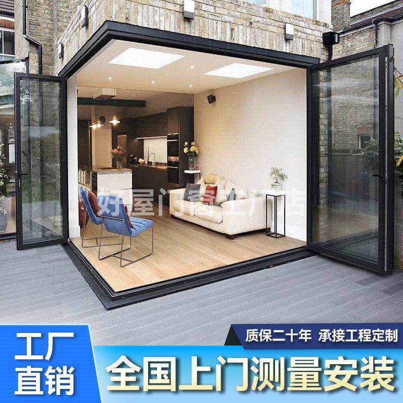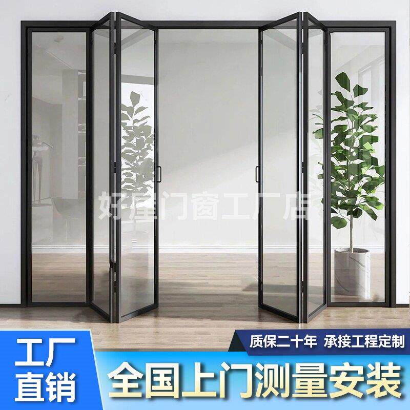 📚 铝合金折叠门隔断门商铺卧室阳台厨房拉门隐形无地轨玻璃折叠门