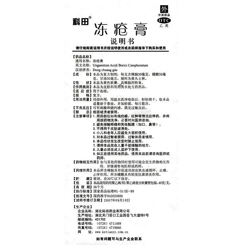📚 科田冻疮膏40克/支用于冻疮止痛止痒