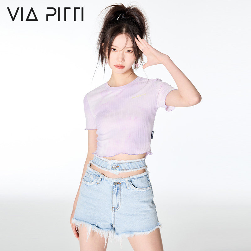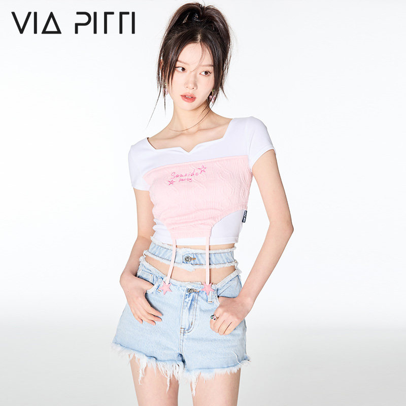 📚 VIAPITTI海滨派对系列挖空双腰牛仔短裤女夏季纯棉热裤