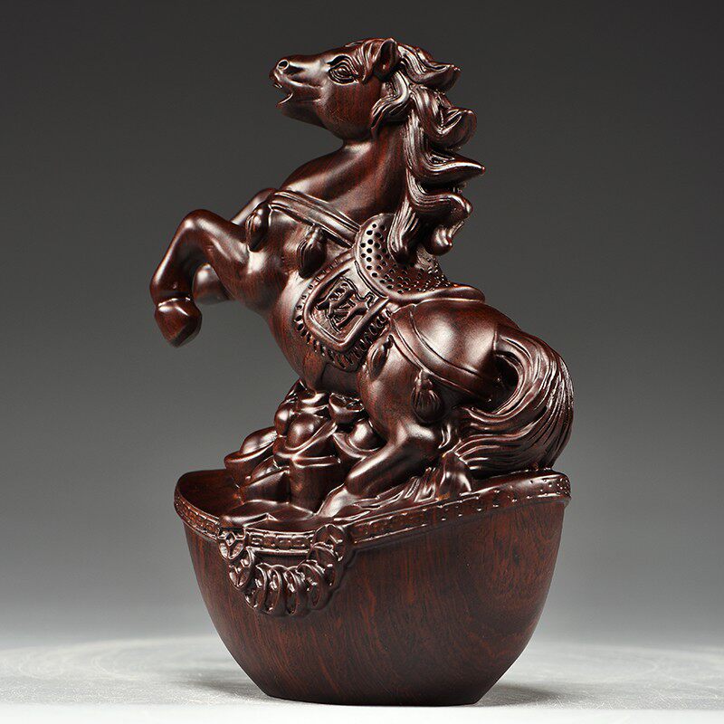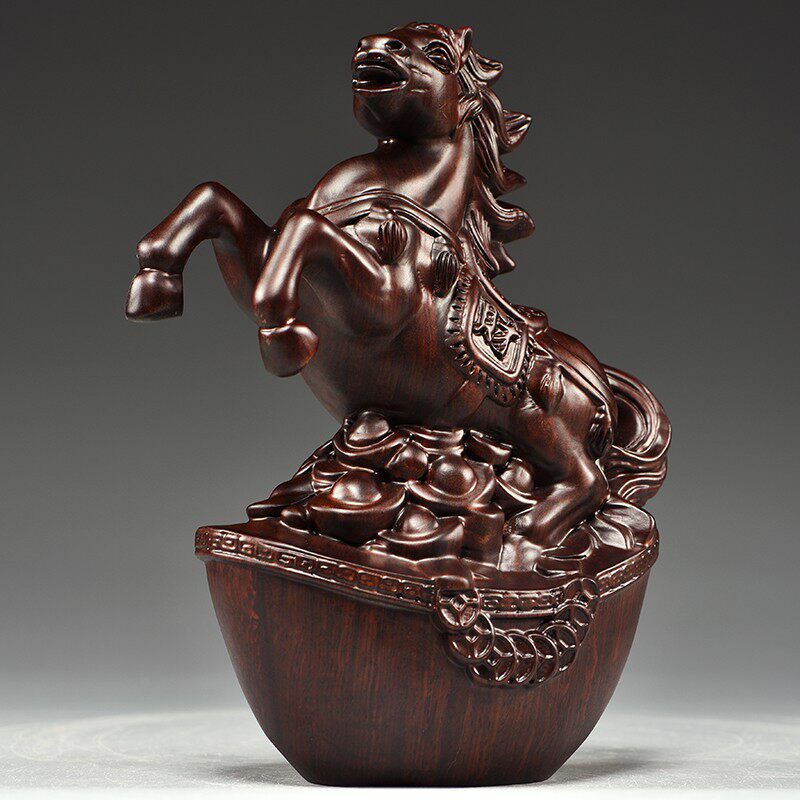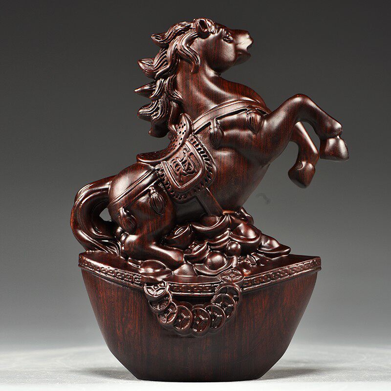 📚 实木马摆件中式黑k檀木雕马到成功工艺品办公室桌装饰家居酒柜摆