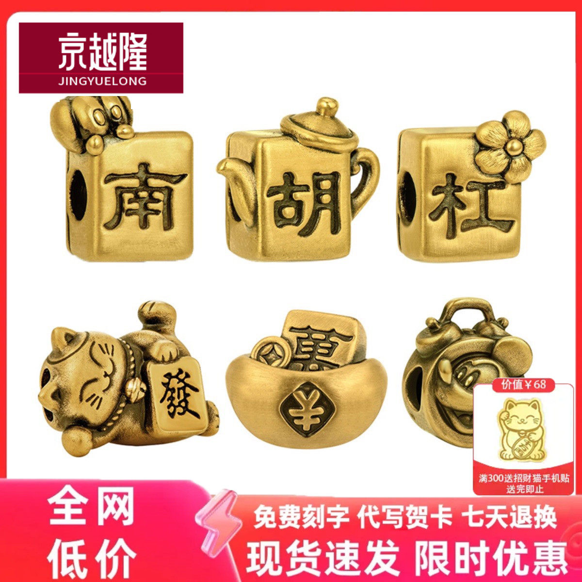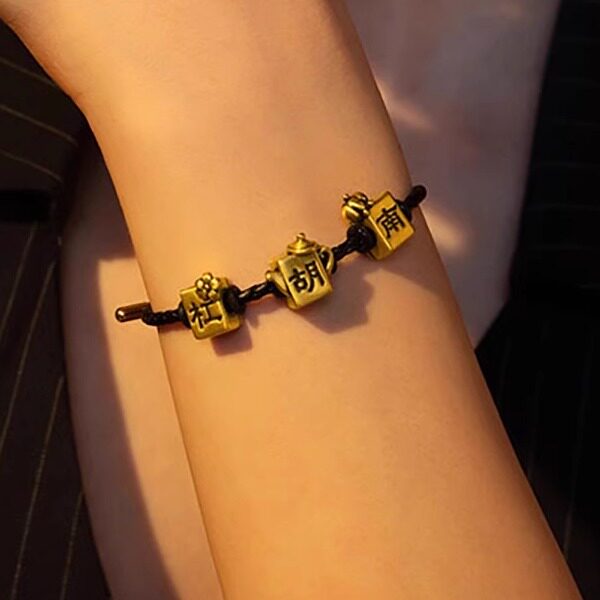 📚 999足金把把胡麻将转运珠黄金杠上开花硬金黑金把把壶招财猫手链