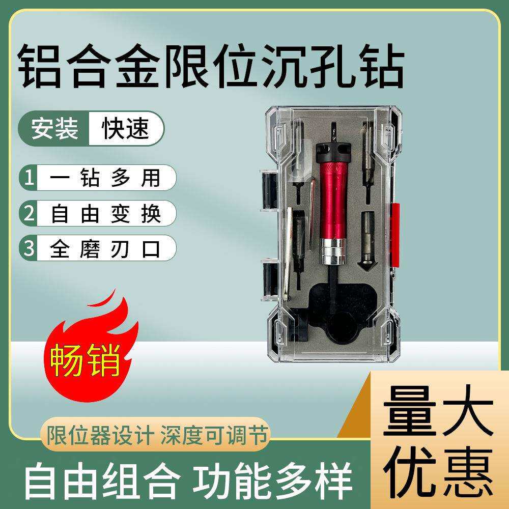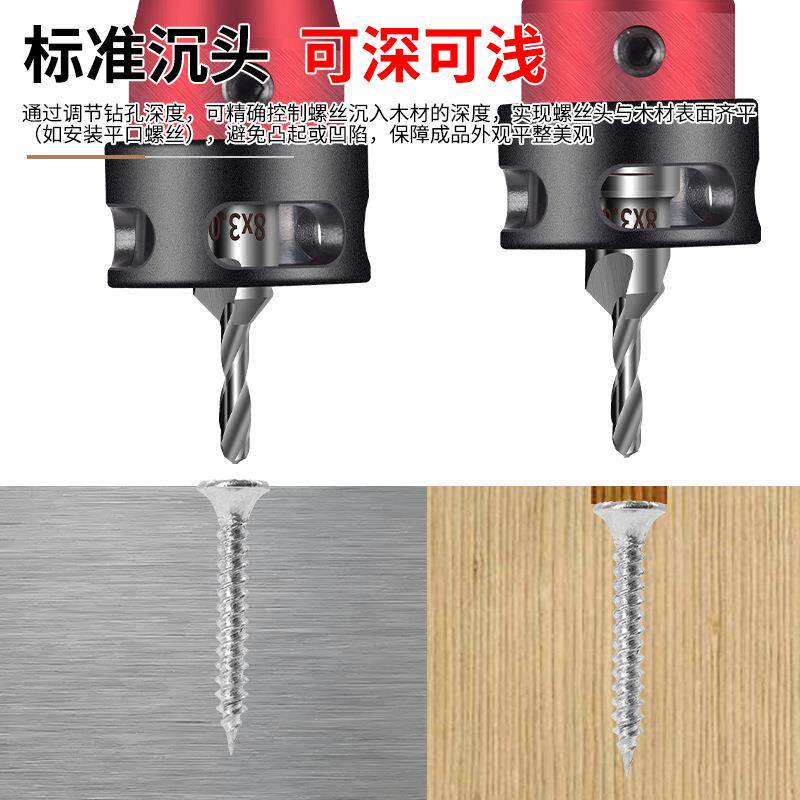 📚 三合一多功能限位沉孔钻套装阶梯钻木工自攻螺丝沉头沉孔钻头