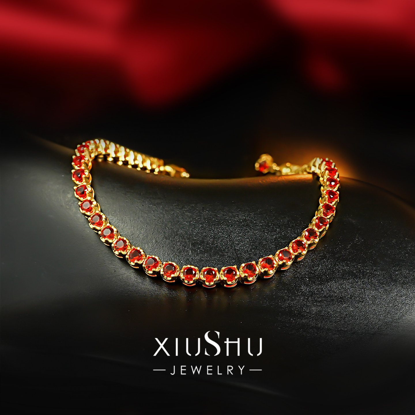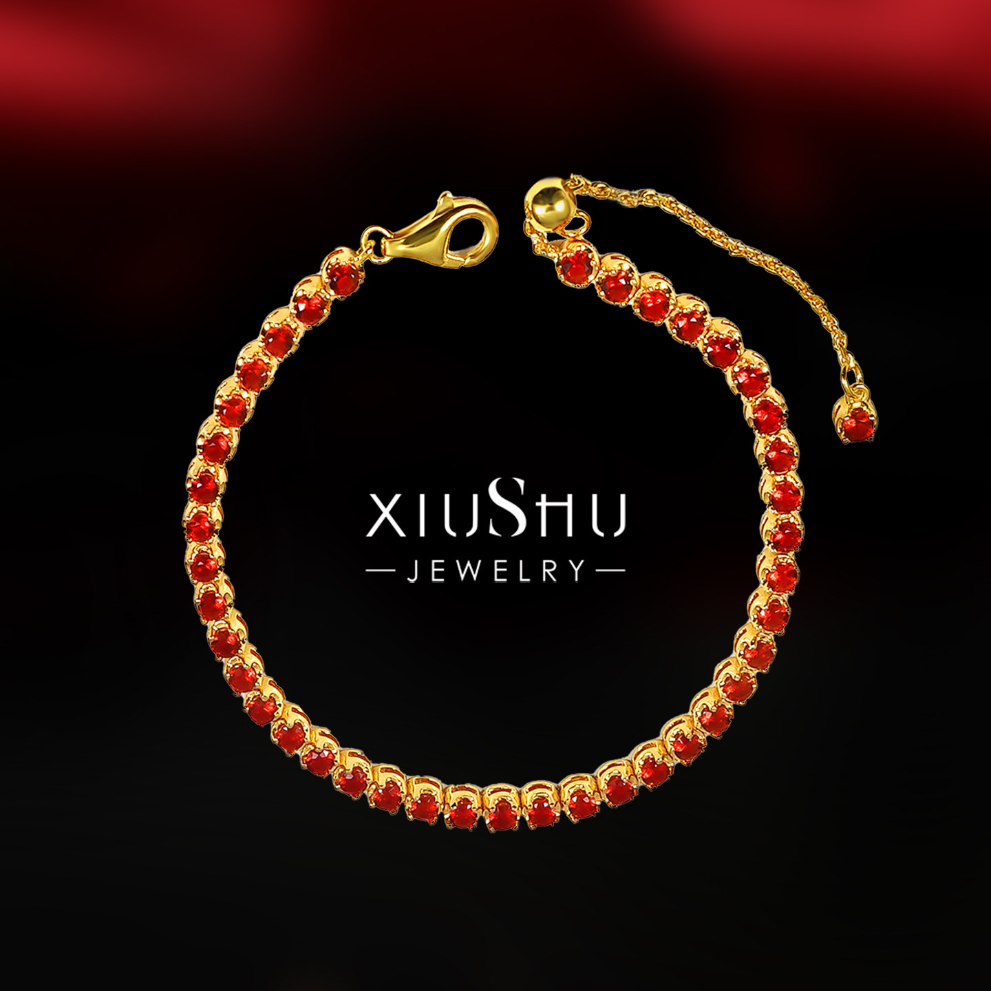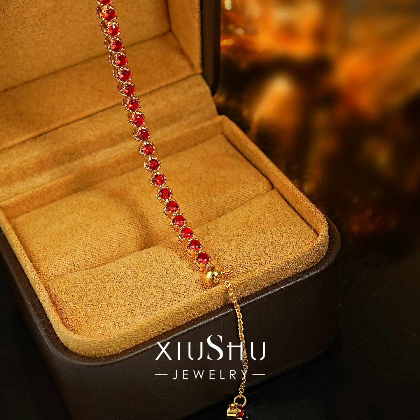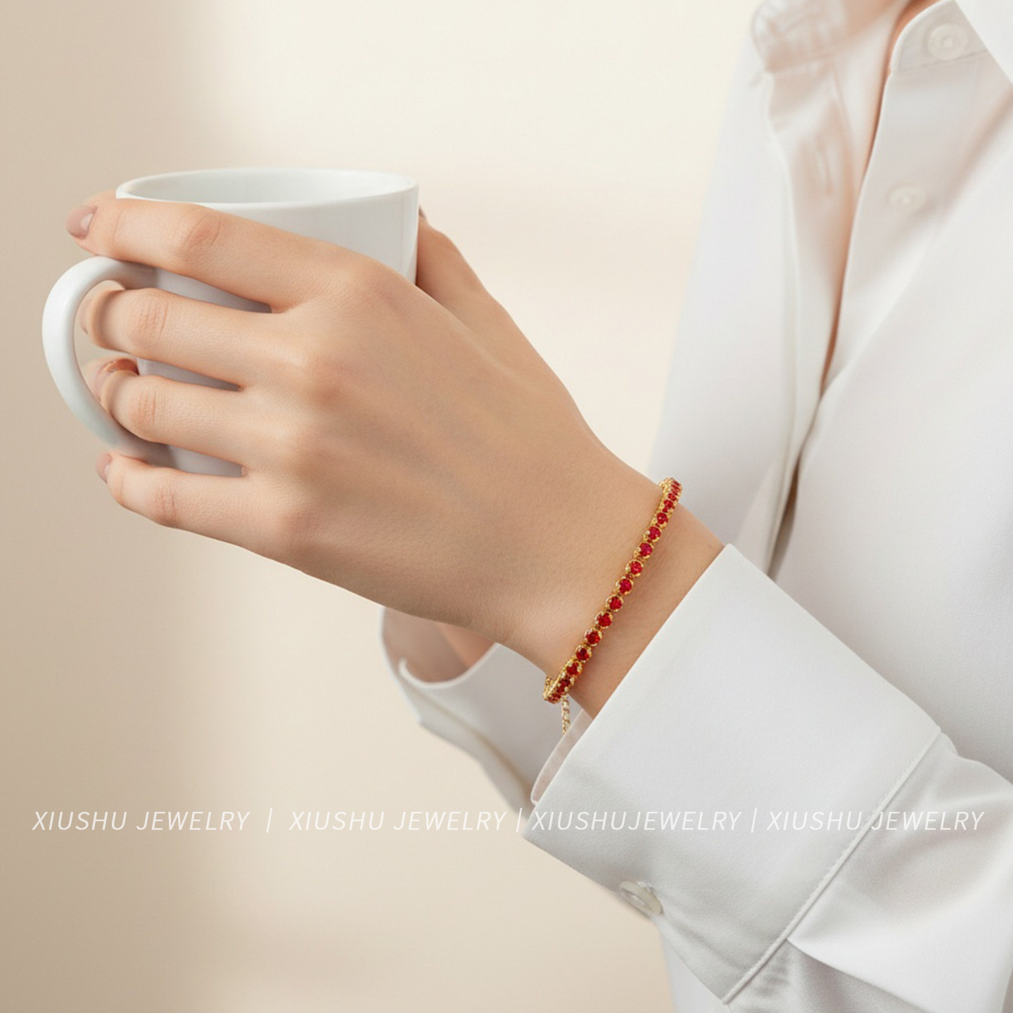 📚 一抹艳红|精工培育鸽血红宝石小巧手链可调节轻奢日常轻奢腕饰