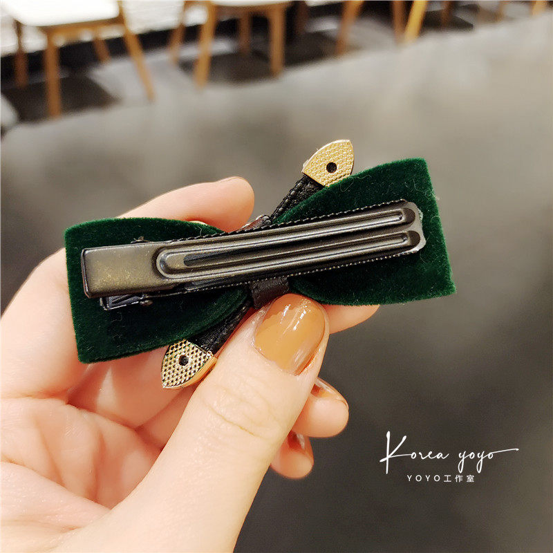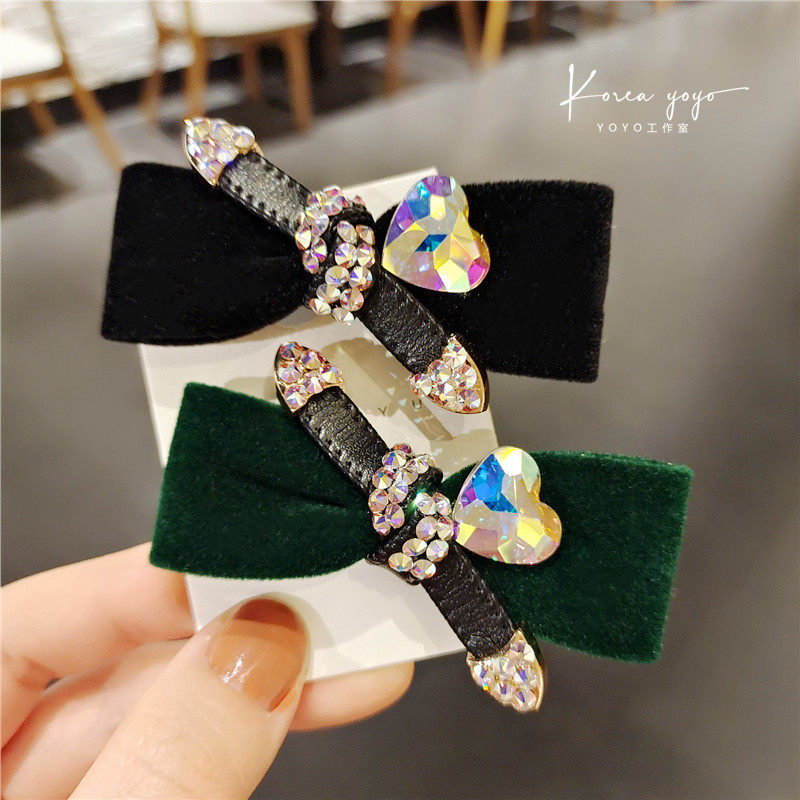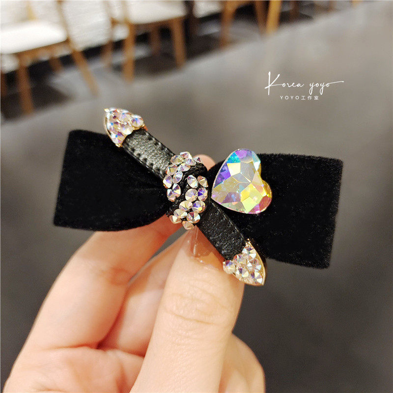 📚 秋冬丝绒蝴蝶结镶钻水钻发夹边夹碎发侧夹发饰头饰卡子刘海夹