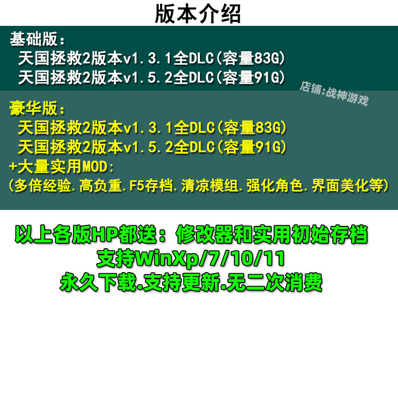 39¥ HU071 HxdXUQVWC50¥ https://m.tb.cn/h.7GlIJv0 天国拯救2全DLC高清中文版PC电脑单机游戏 送修改器 初始存档 --------------------- 【原售价】0.9元 【现售价】0.9元。