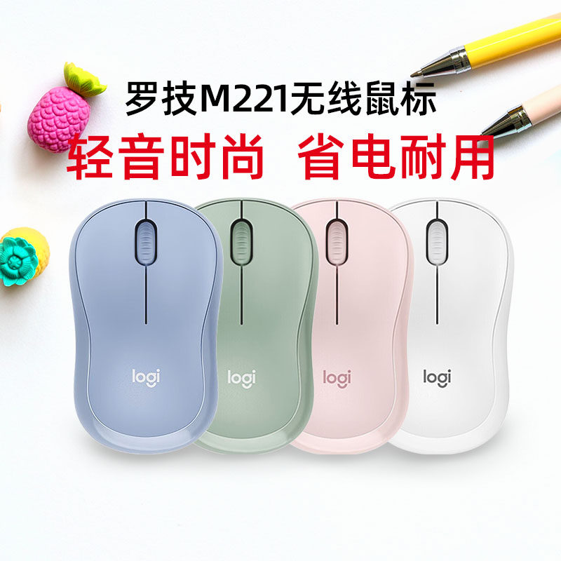 📚 罗技M221无线鼠标办公蓝粉色绿白商务笔记本台式便携m220