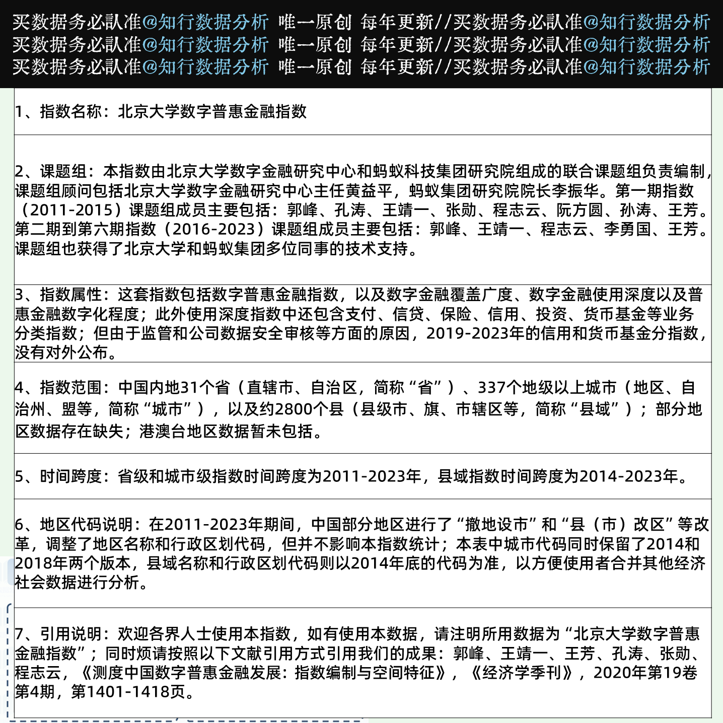📚 北大数字普惠金融指数2023-2011(省级、地市级、县域级)