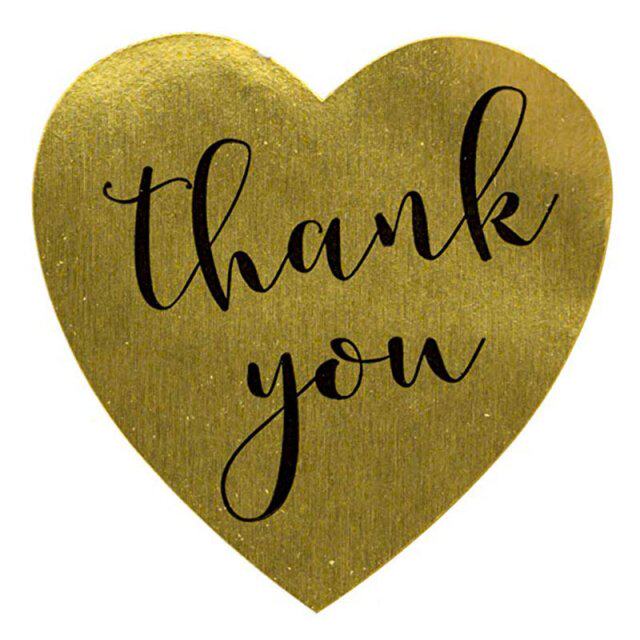 📚 100-500pcs Golden Thank You Sticker For Parents Friends Hear