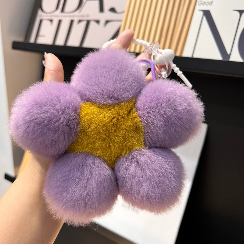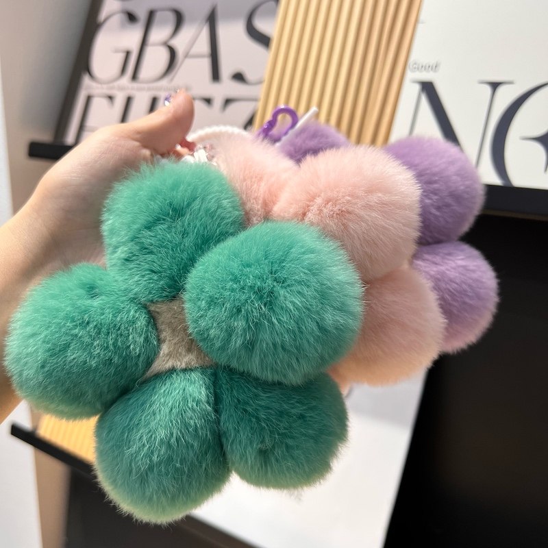 📚 【可爱花朵】真獭兔毛小花汽车钥匙扣挂件ins毛绒球花花包包挂饰