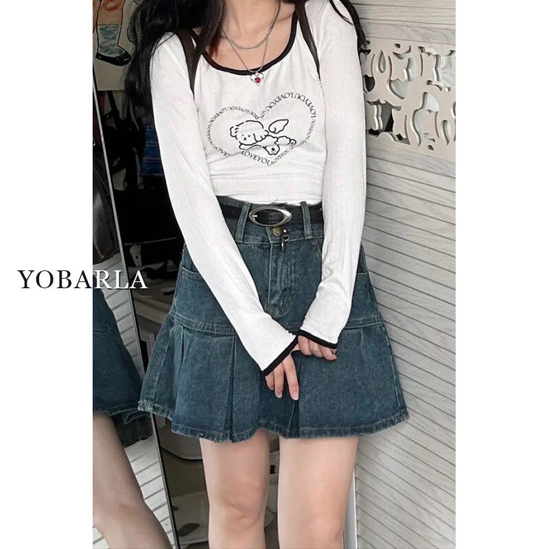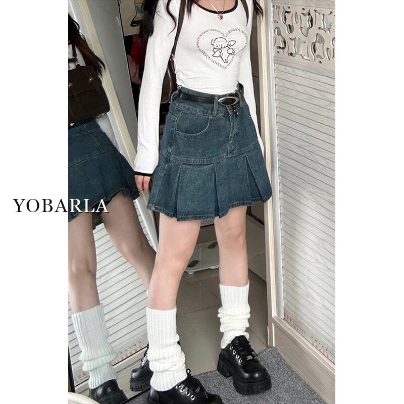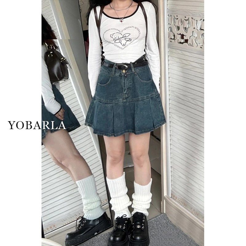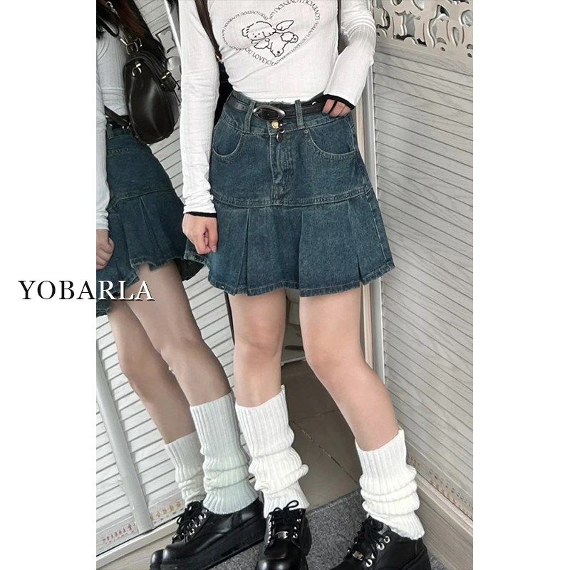📚 百褶牛仔短裙女夏季高腰胖mm大码遮肚子显瘦梨形身材a字半身裙子