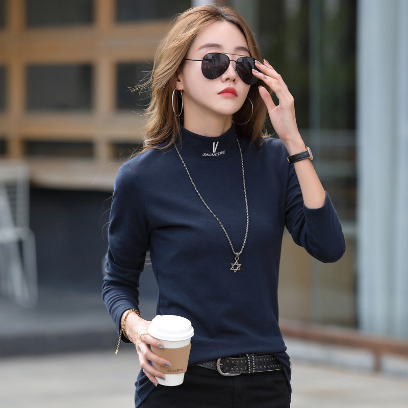 📚 半高领针织衫保暖打底衫女秋冬装网红白领微胖小个子内搭上衣t恤
