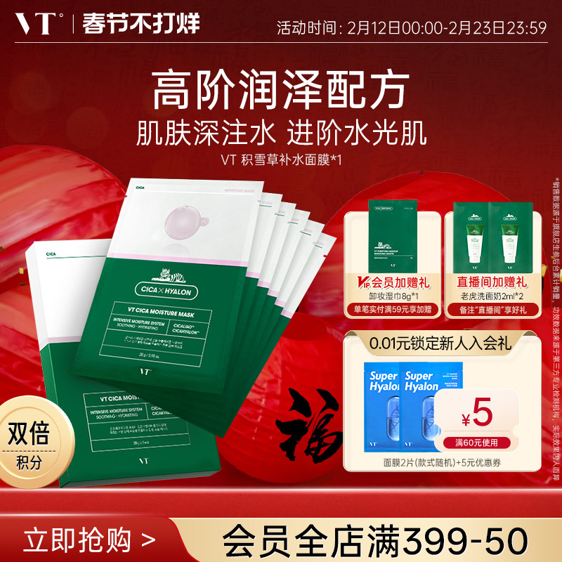 📚 VT沁润补水面膜积雪草保湿植萃加持膜布服帖换季熬夜单盒