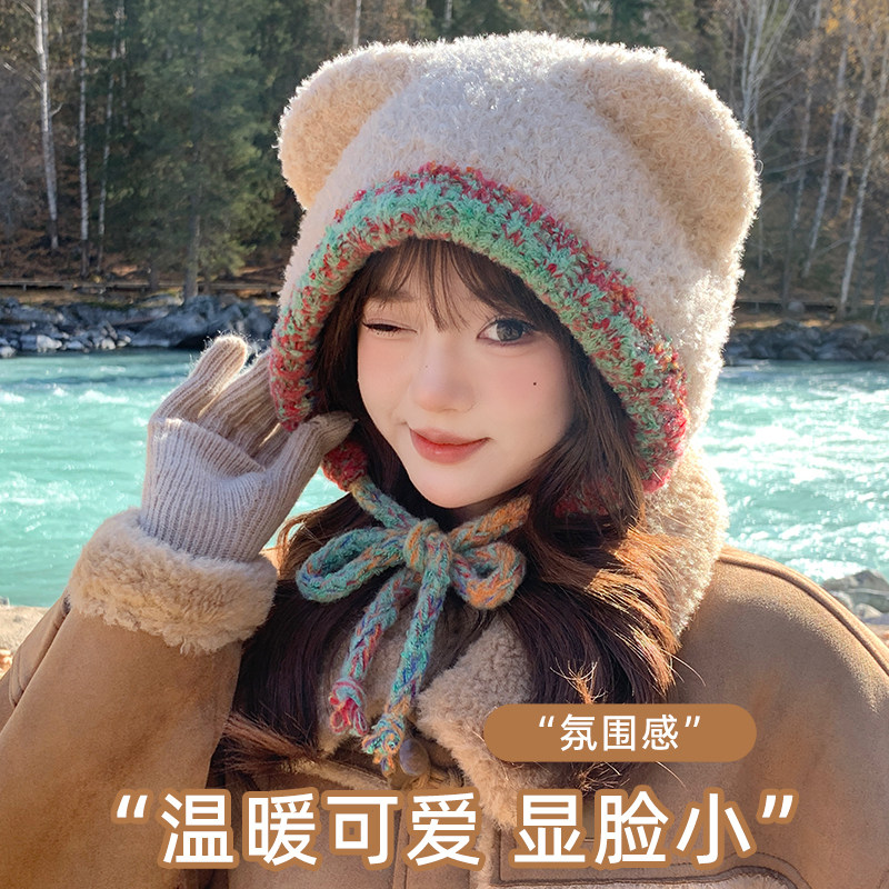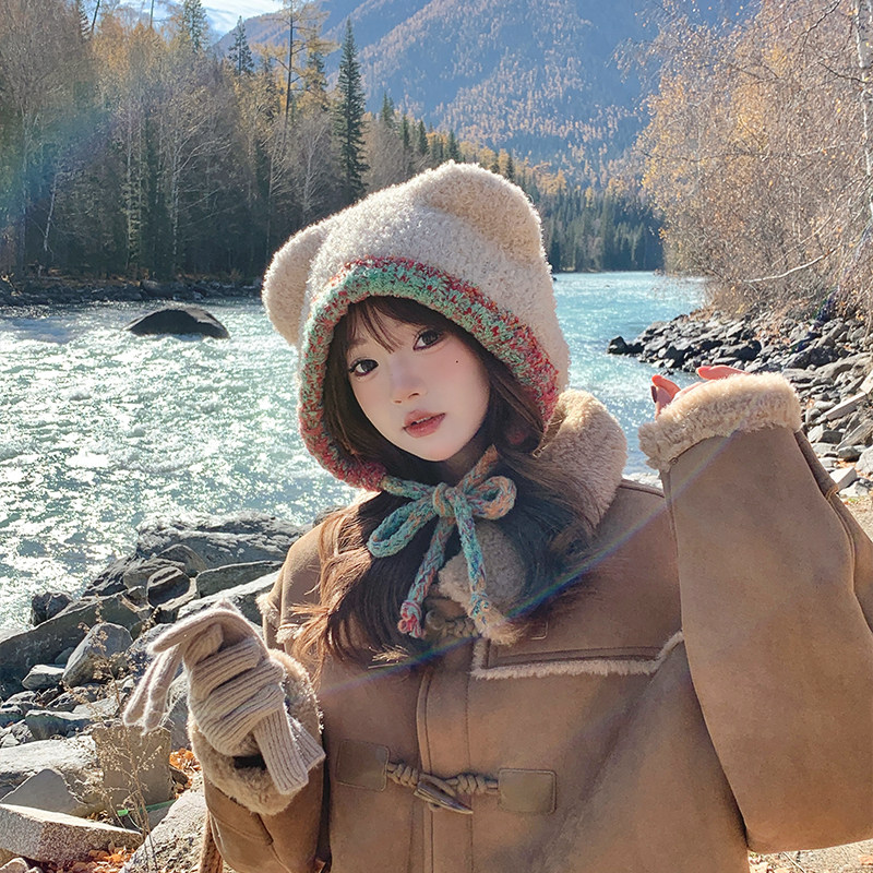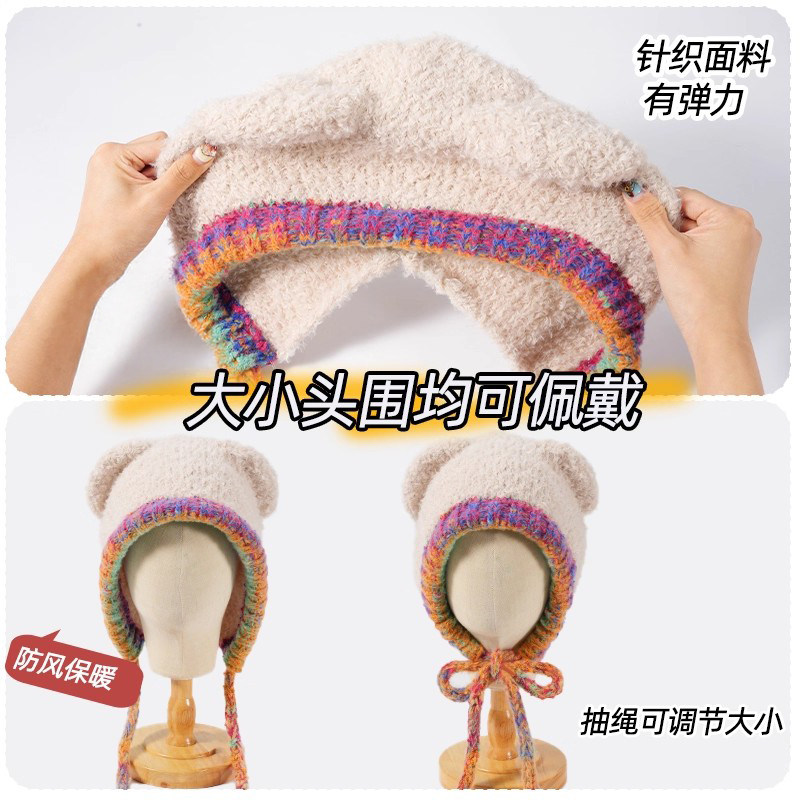 📚 型公馆可爱小熊针织帽子冬季毛线帽高颜值