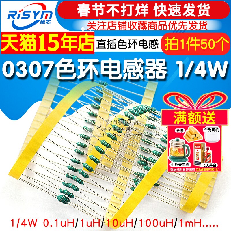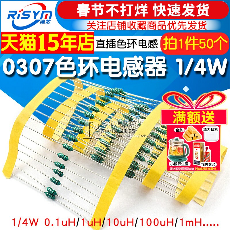 📚 0307色环电感0.1uH/1uH/10uH/100uH/1mH色码电感器 1/4W色码电感