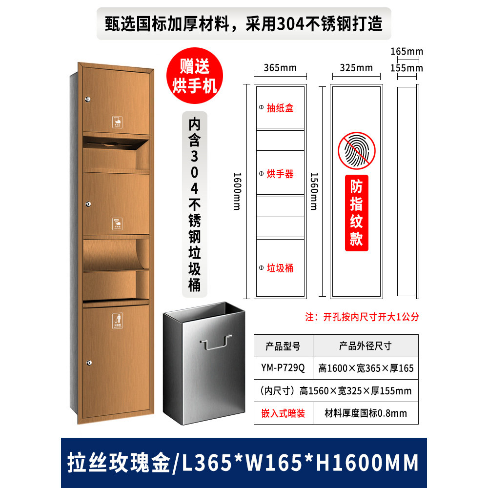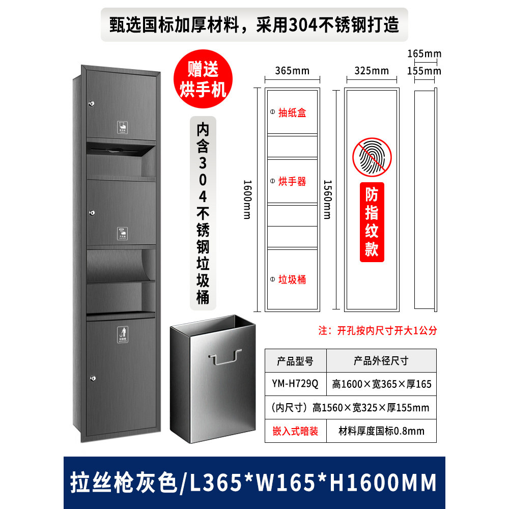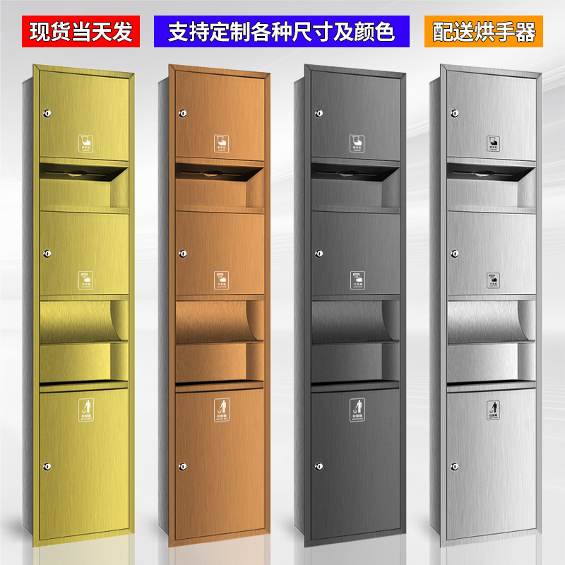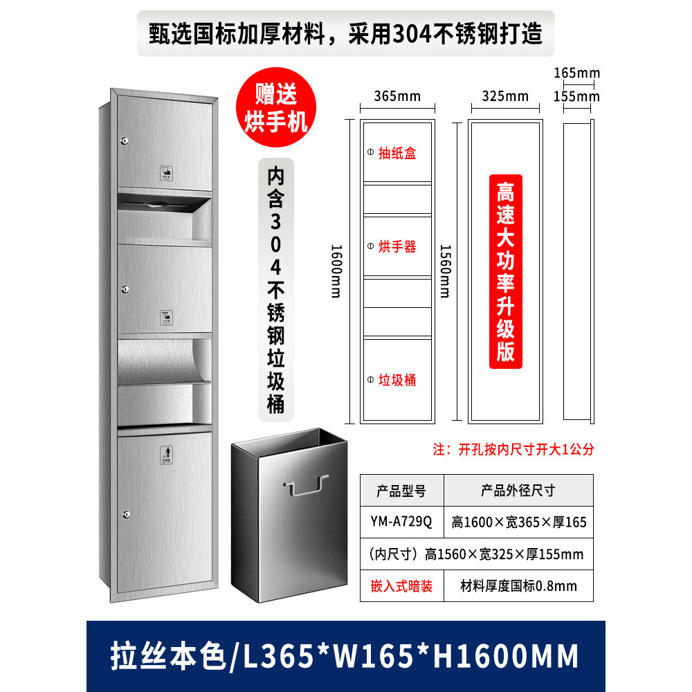 📚 卫生间不锈钢三合一烘手器嵌入式擦手纸盒抽纸箱垃圾桶干手一体机