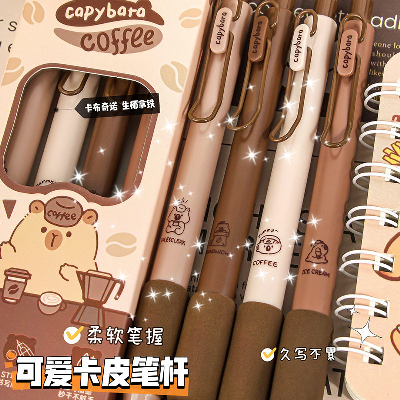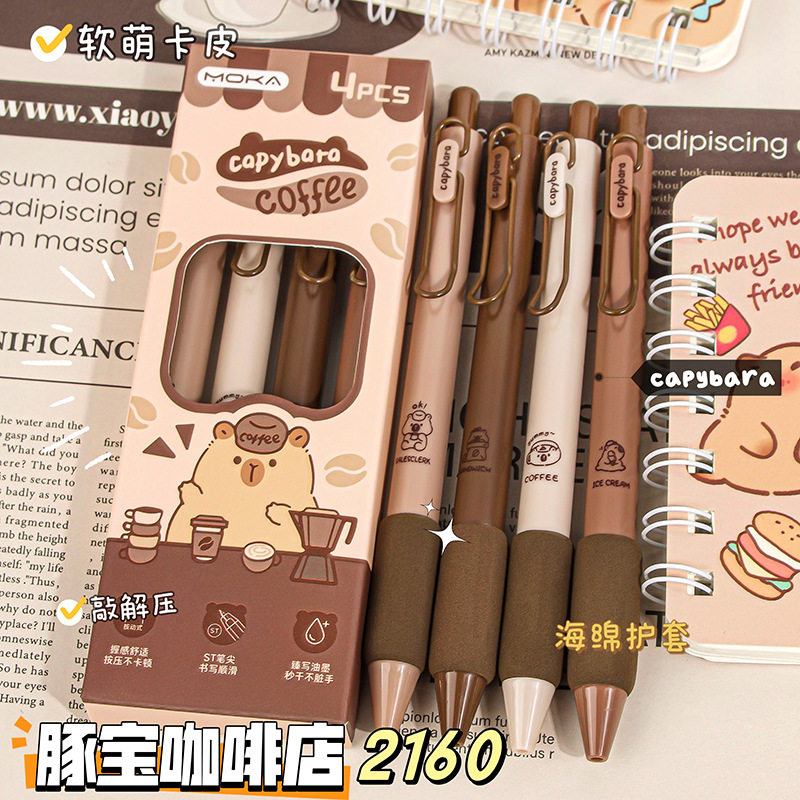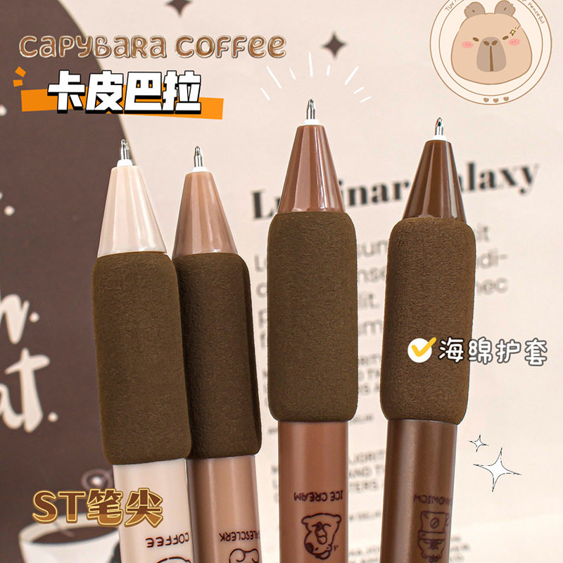 📚 卡皮巴拉中性笔咖啡店绵绵笔按动式水笔刷题笔不累手学生水性笔高颜值可爱水豚鼠大容量速干笔考试0.5mm黑笔