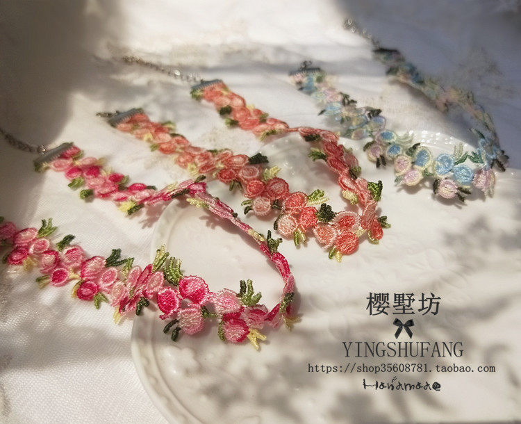 📚 【店庆回馈】韩国超仙樱桃蕾丝系带choker颈带项链网红项圈锁骨链