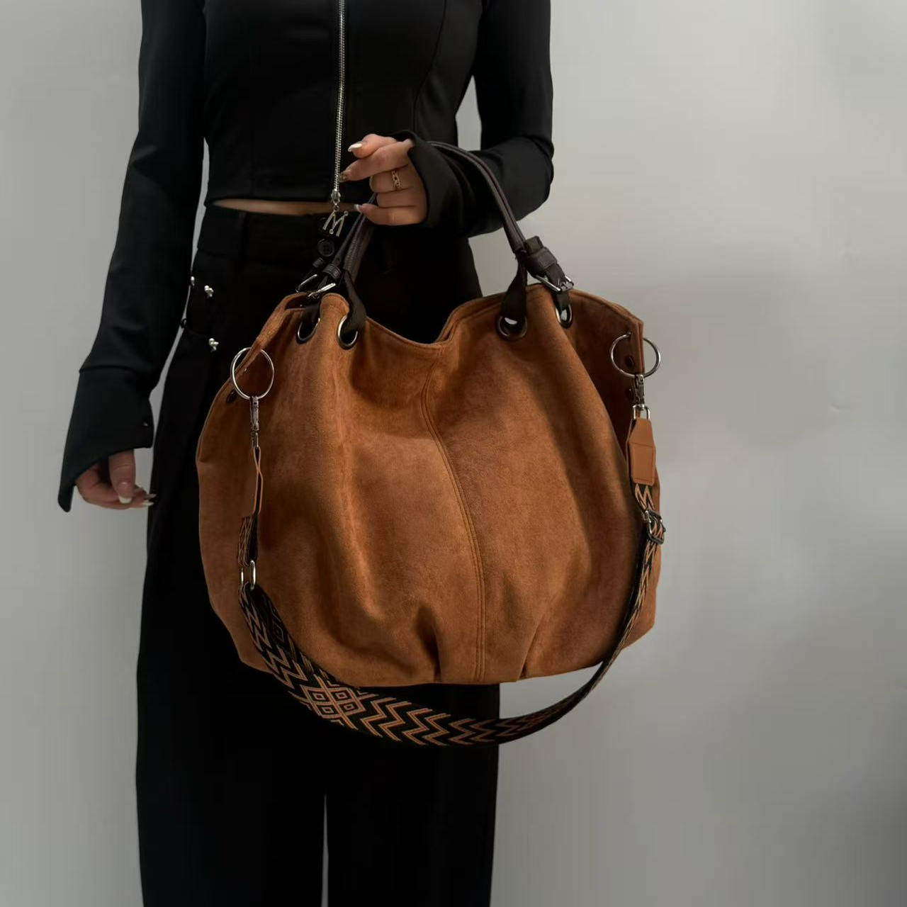 📚 男女复古百搭大容量麂皮绒托特包女单肩斜挎包通勤手提包棕色大包