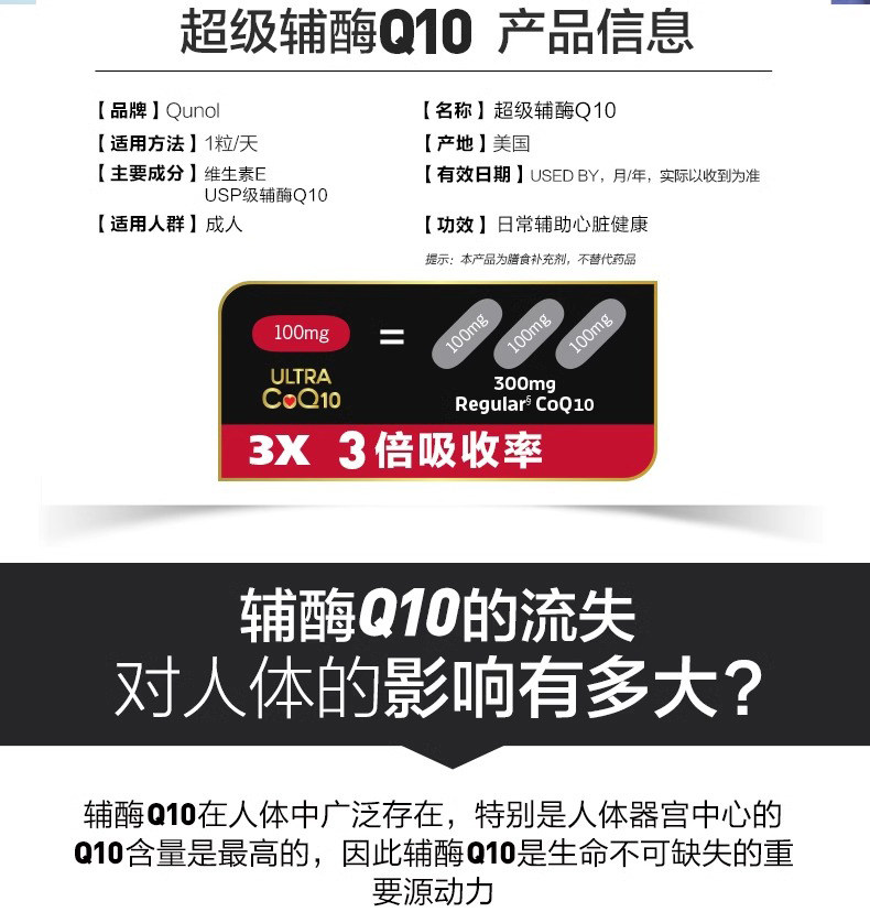 📚 美国原装进口Qunol酋诺超级辅酶Q10氧化型软胶囊3倍吸收心脑血管