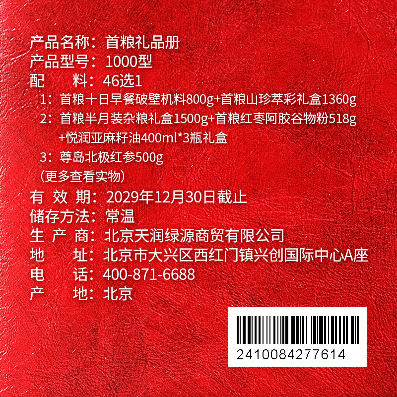 📚 首粮春节礼品卡1000型1张年货购物自选礼品册新年礼包兑换提货券