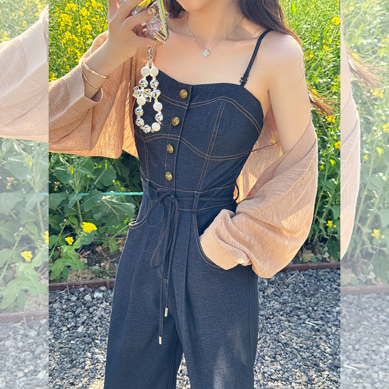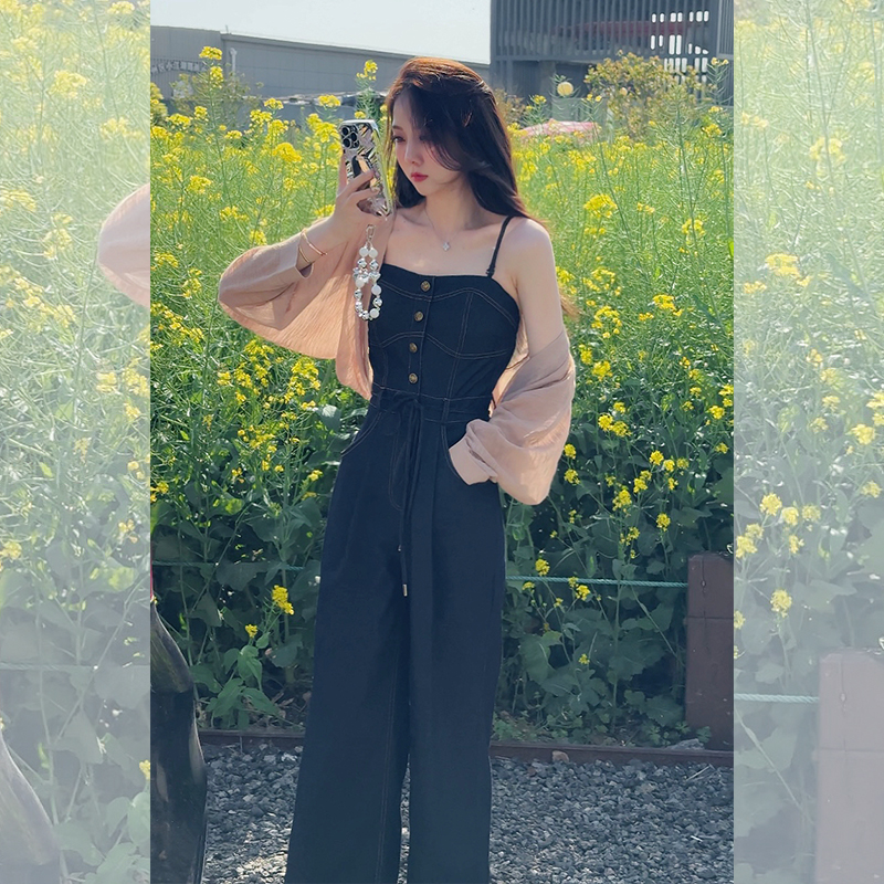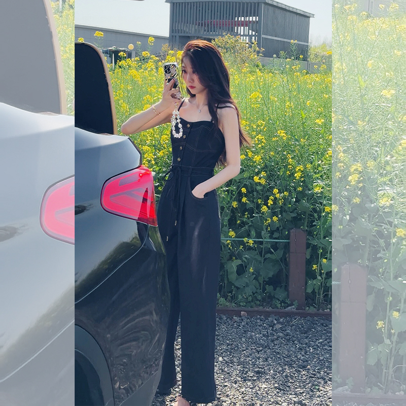 📚 壹壹【周末牛仔】夏季吊带牛仔连体裤高腰阔腿2404K01GAGAZHANG