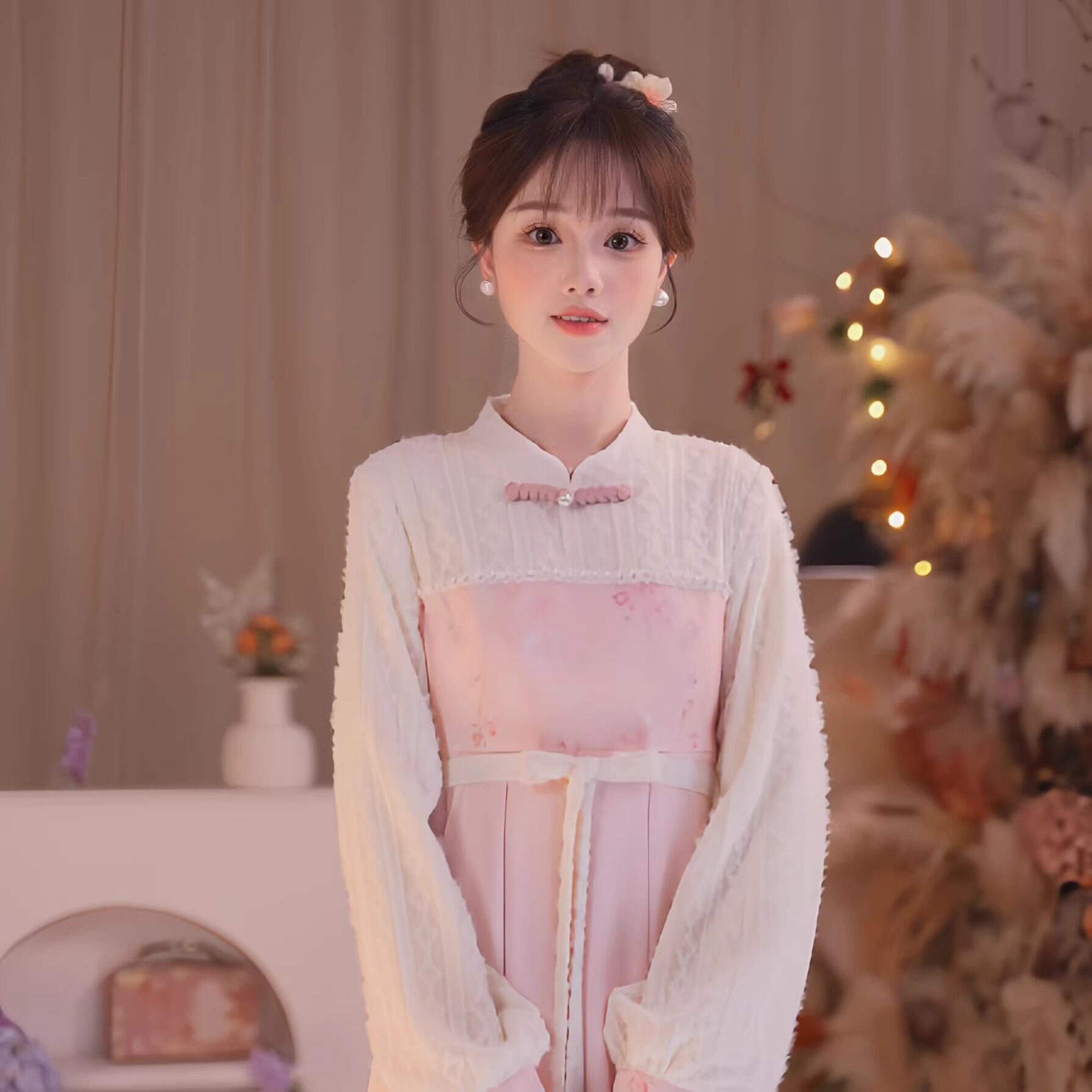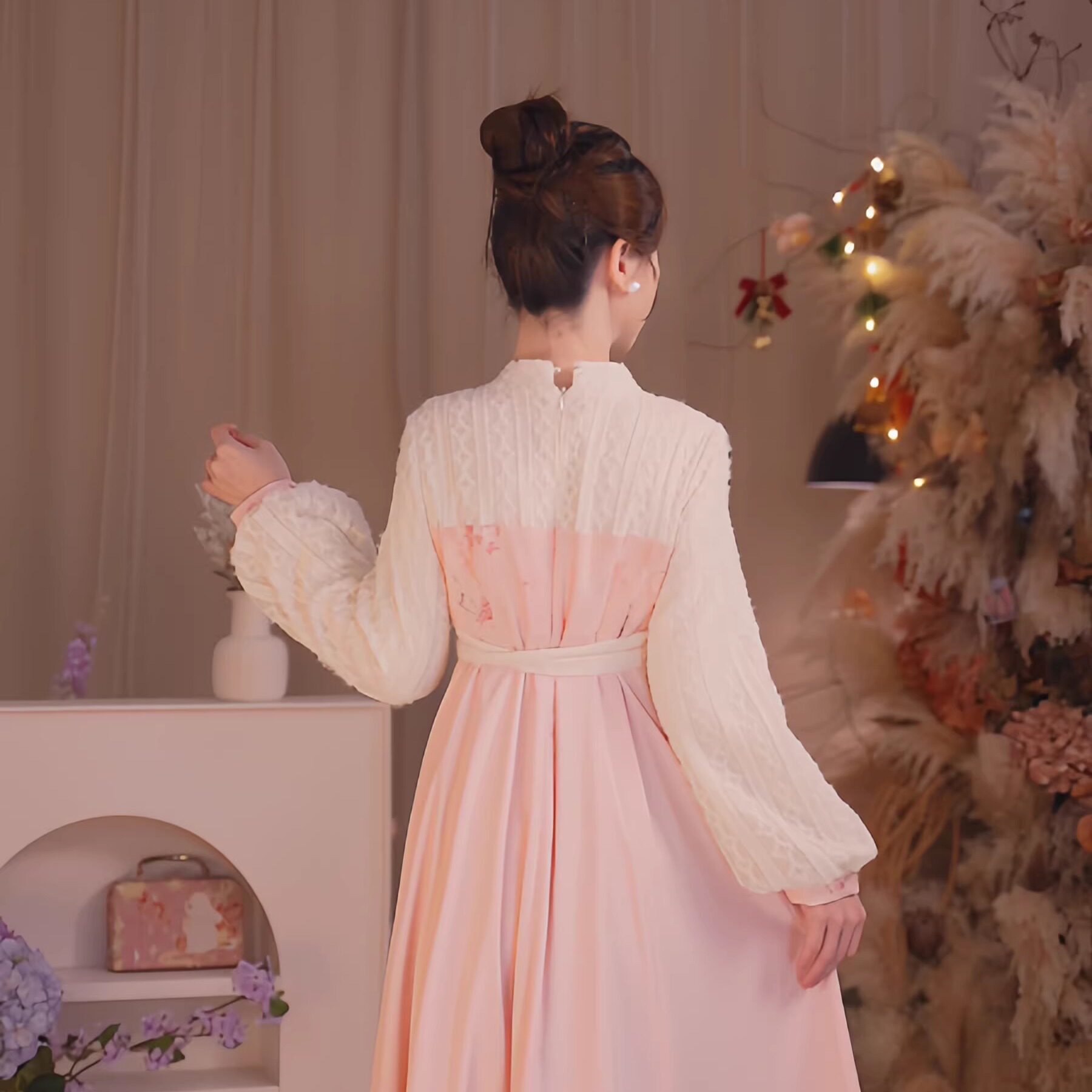 📚 瑶西【浅黛花浔】冬季国风原创新款毛绒蕾丝仙气长袖长款连衣裙