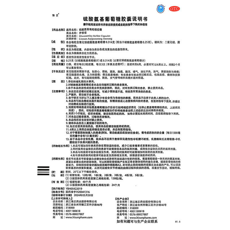 📚 海正伊索佳硫酸氨基葡萄糖胶囊骨关节炎国药准字正品官方旗舰店