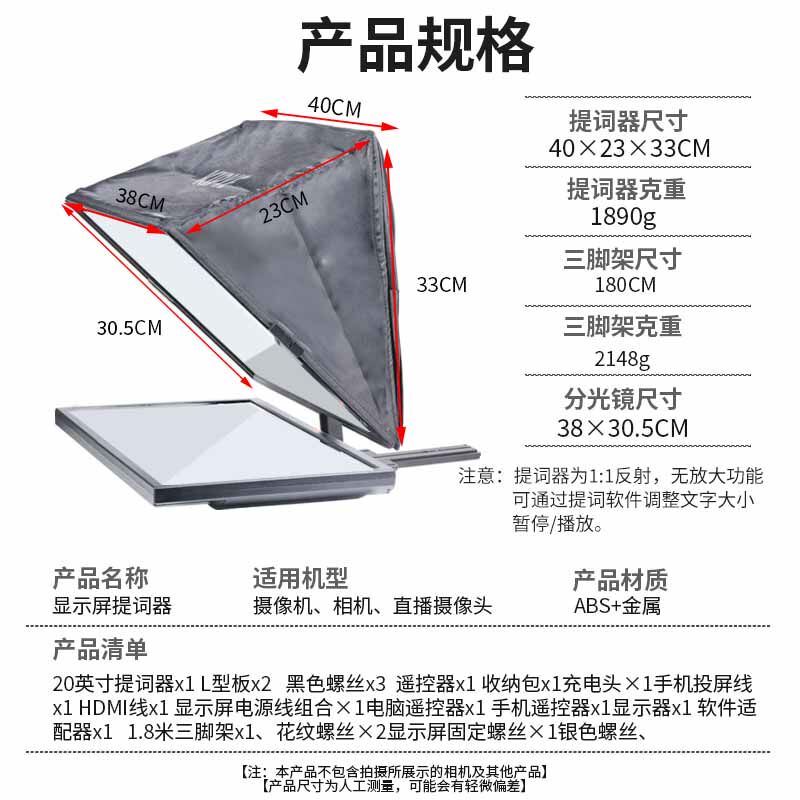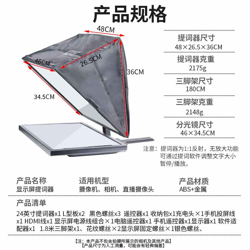 📚 大屏幕提词器20/24英寸屏幕手机口播相机提字器大屏平板笔记本专业拍摄题词器单反直播演讲主播主持人拍摄