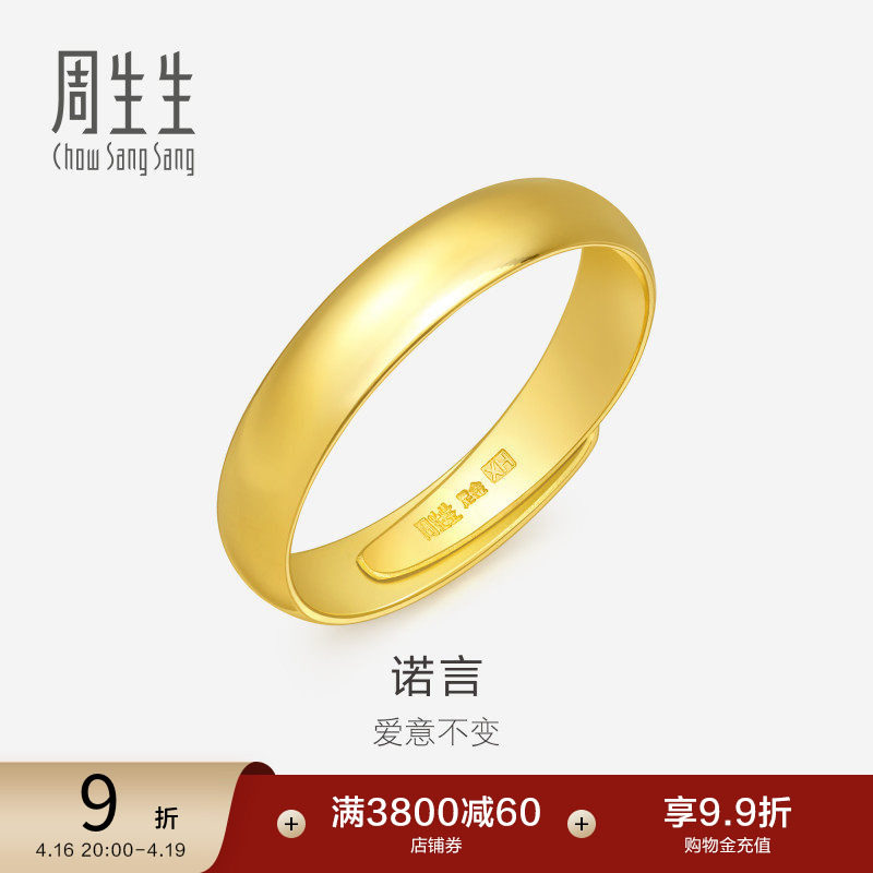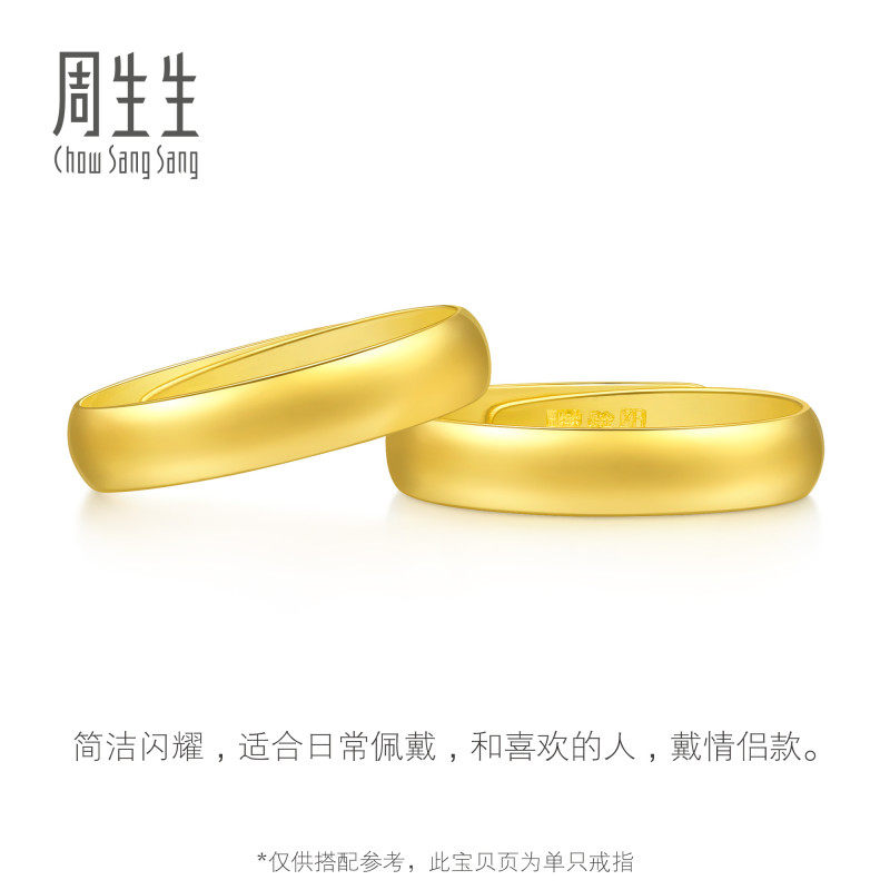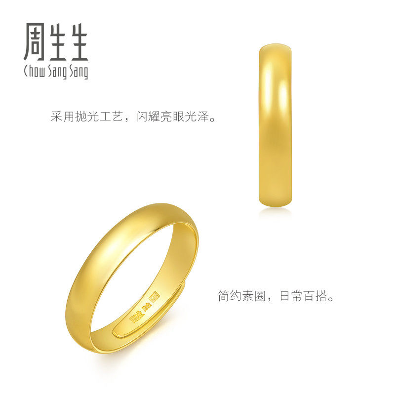 📚 周生生足金泥鳅背黄金戒指素圈男款开口戒情侣对戒09141R