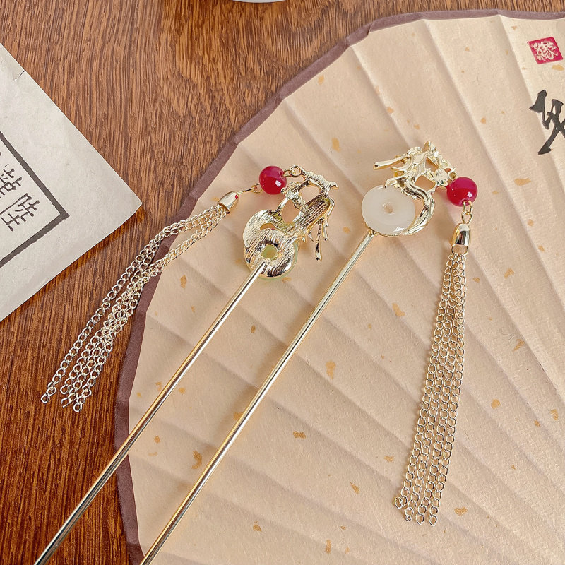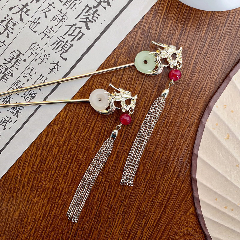 📚 新中式龙形发簪气质典雅后脑勺簪子古风流苏步摇发钗发饰2025新款