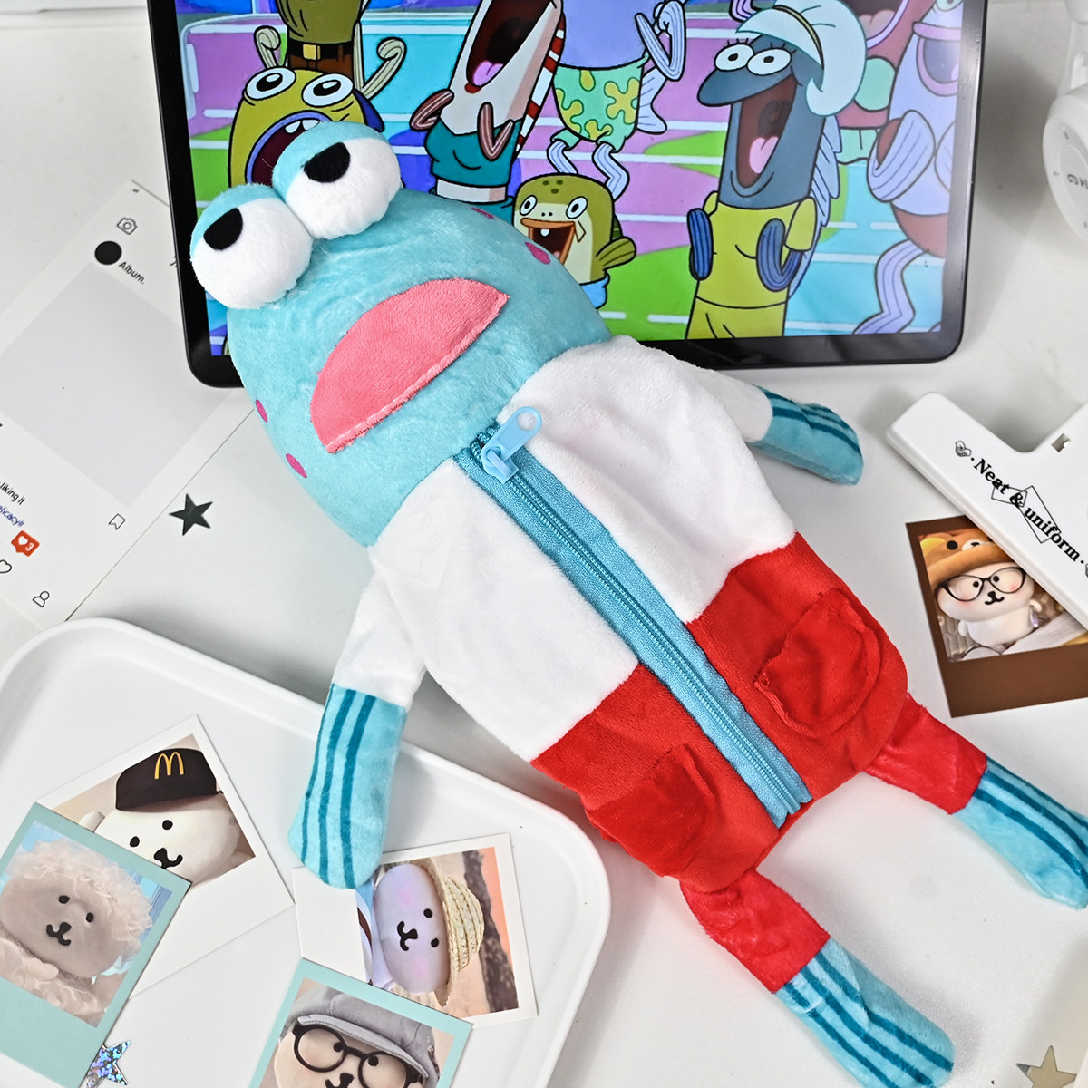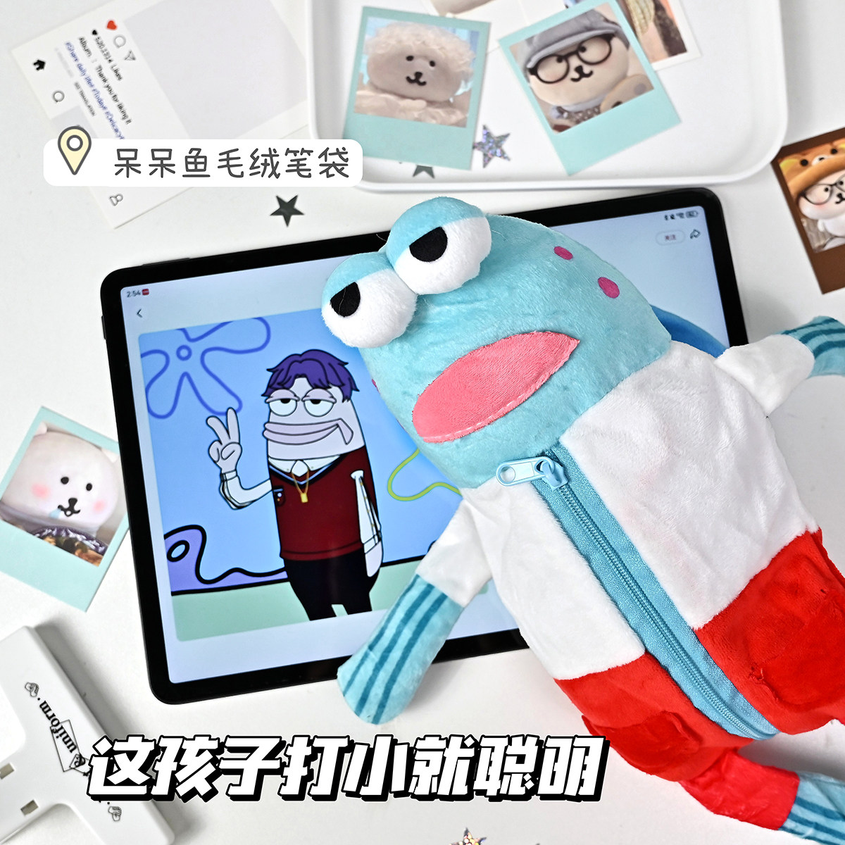 📚 比奇堡呆呆鱼笔袋搞怪创意大容量学生桌面整理小众文具收纳笔盒
