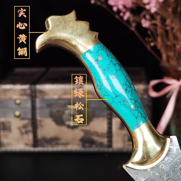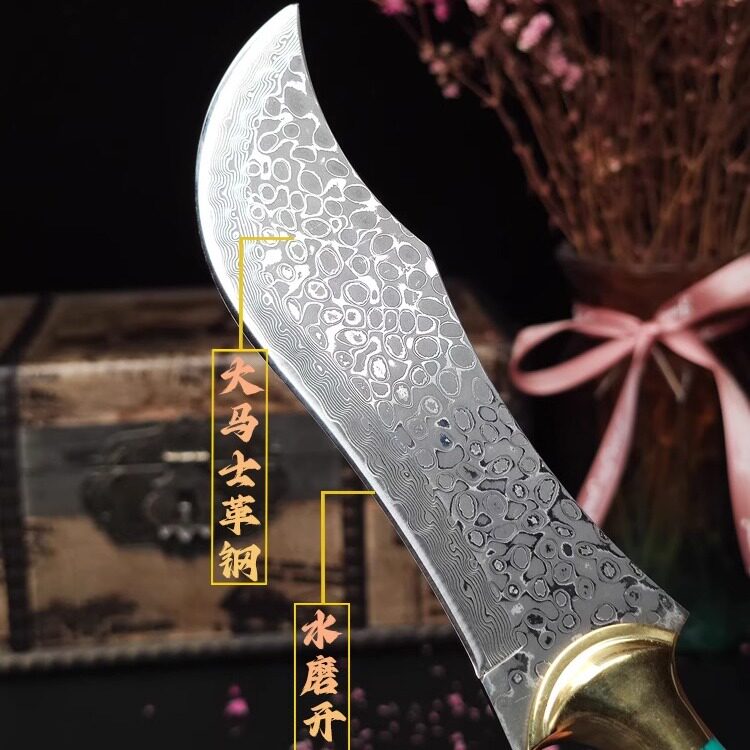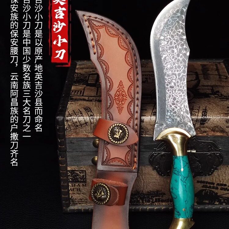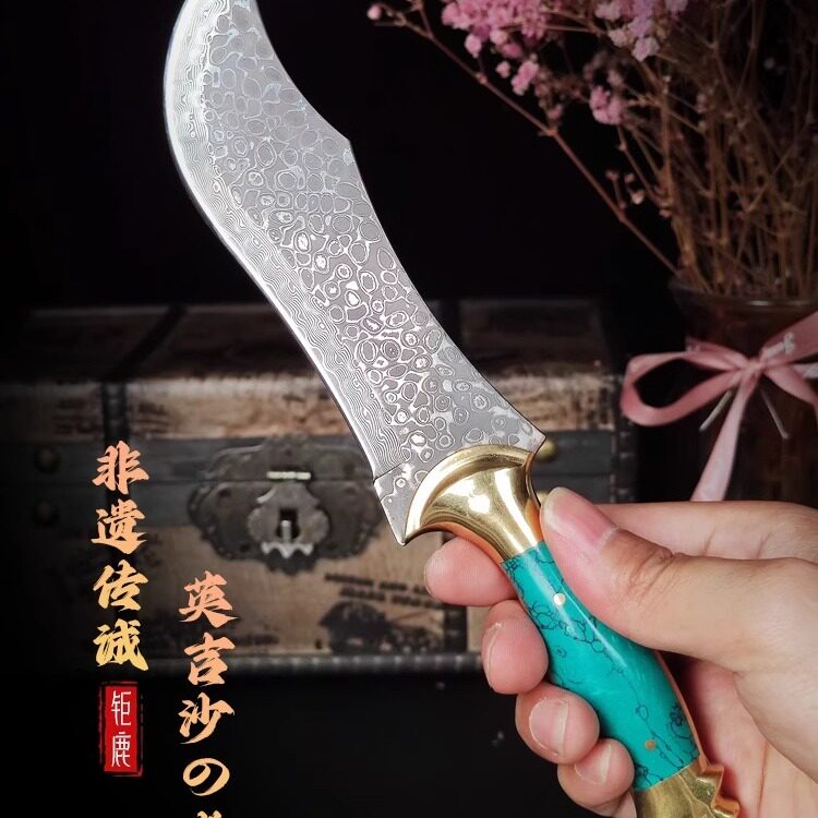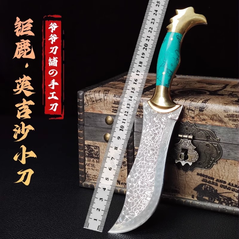 📚 英吉沙小刀大马士革搞硬度家用锋利户外剔骨刀户外防身蒙古小刀