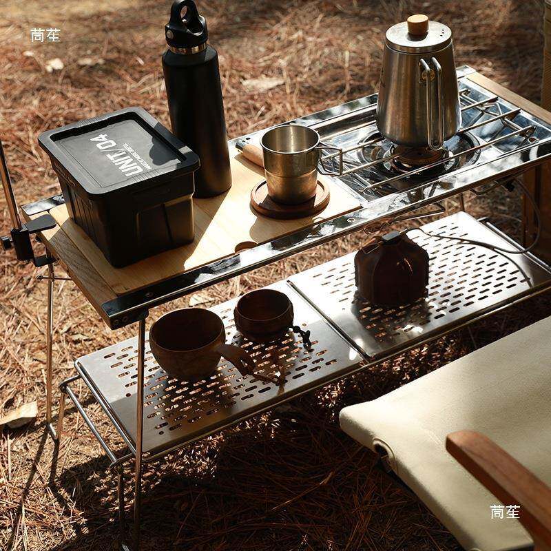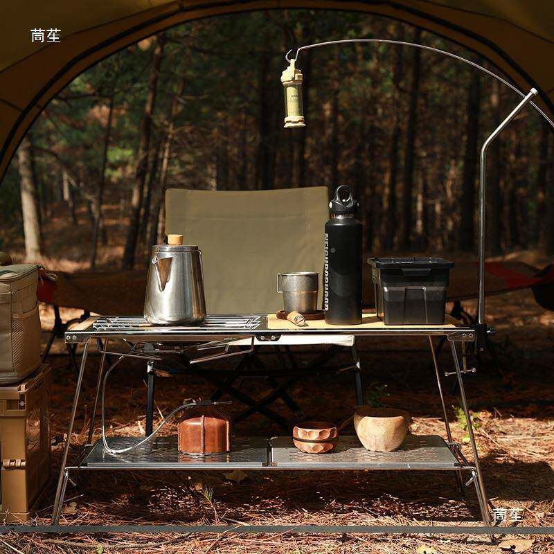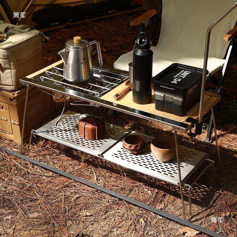 📚 户外露营igt折叠双层置子物水桶架IG桌T不锈桌钢野QTW餐一单元垒