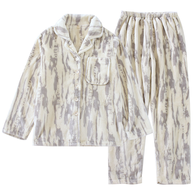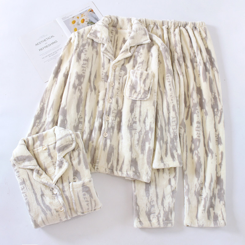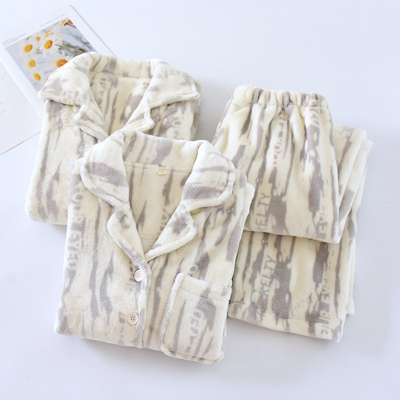 📚 2024年冬法兰绒情侣睡衣女加厚保暖开衫休闲男斑纹字母家居服套装