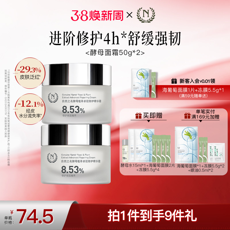 📚 自然之名酵母植萃卓能精粹修护面霜紧致保湿滋润嫩肤男女官方正品