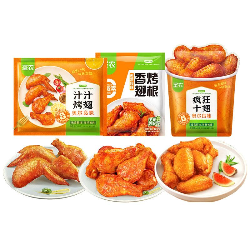 📚 圣农疯狂十翅奥尔良味汁汁烤翅香烤翅根共3包组合空气炸锅半成品