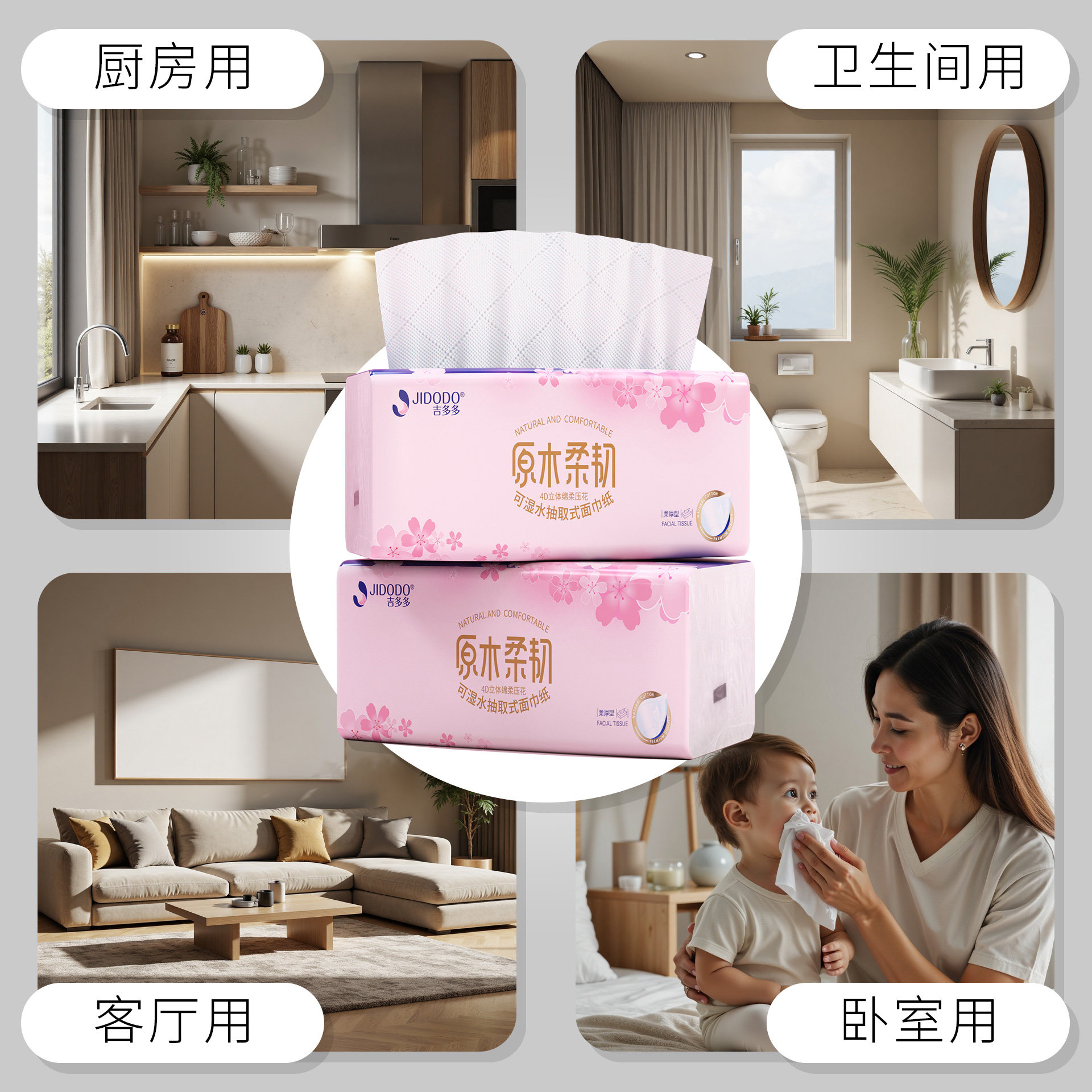 📚 吉多多抽纸60抽5层大包面巾纸30包整箱纸巾家用实惠装餐巾纸批发