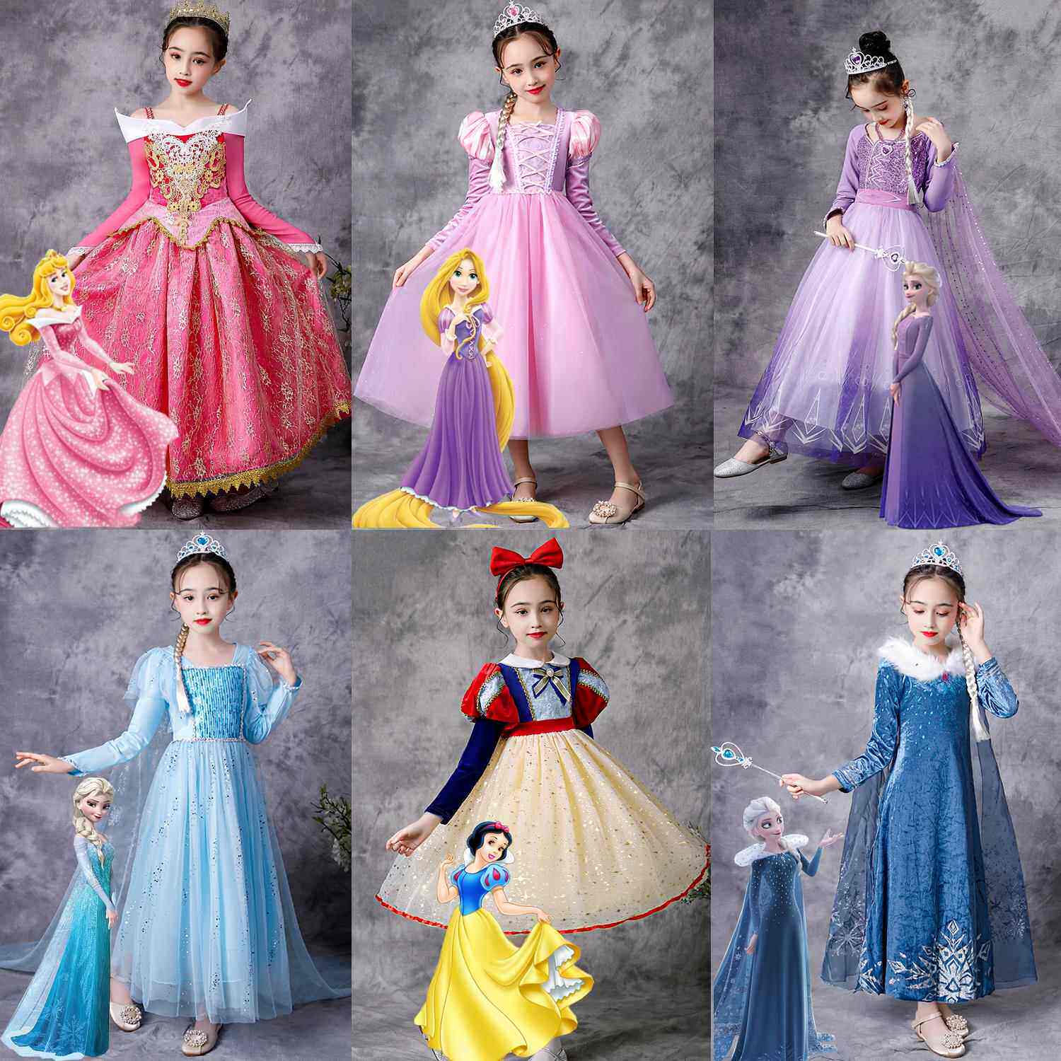 📚 万圣节儿童服装冰雪奇缘爱莎安娜公主裙女童迪士尼白雪公主连衣裙