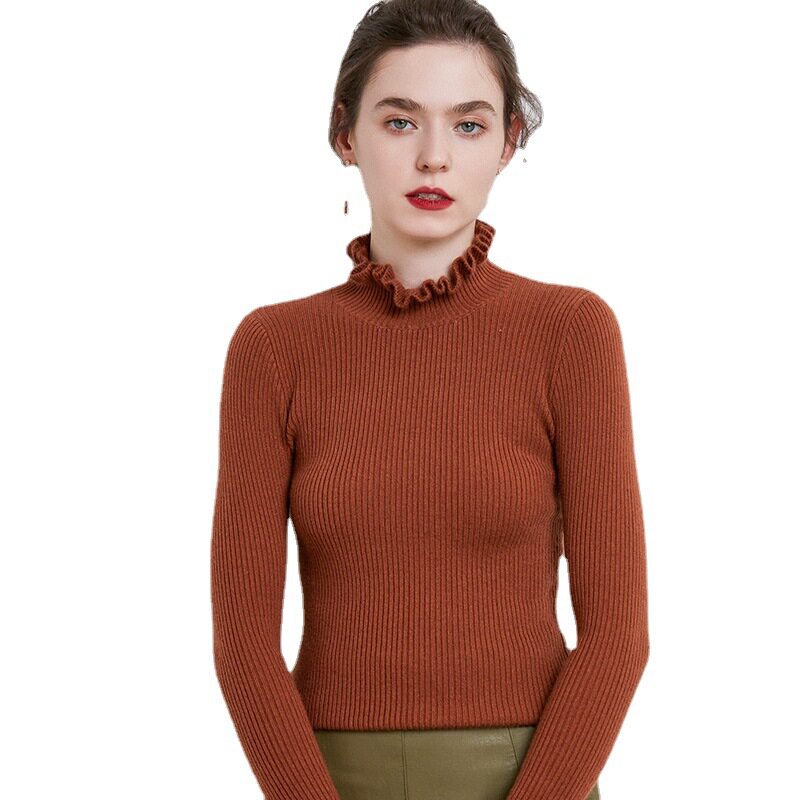 📚 木耳领羊毛针织衫女花边荷叶边毛衣女内搭修身半高领打底衫女秋冬