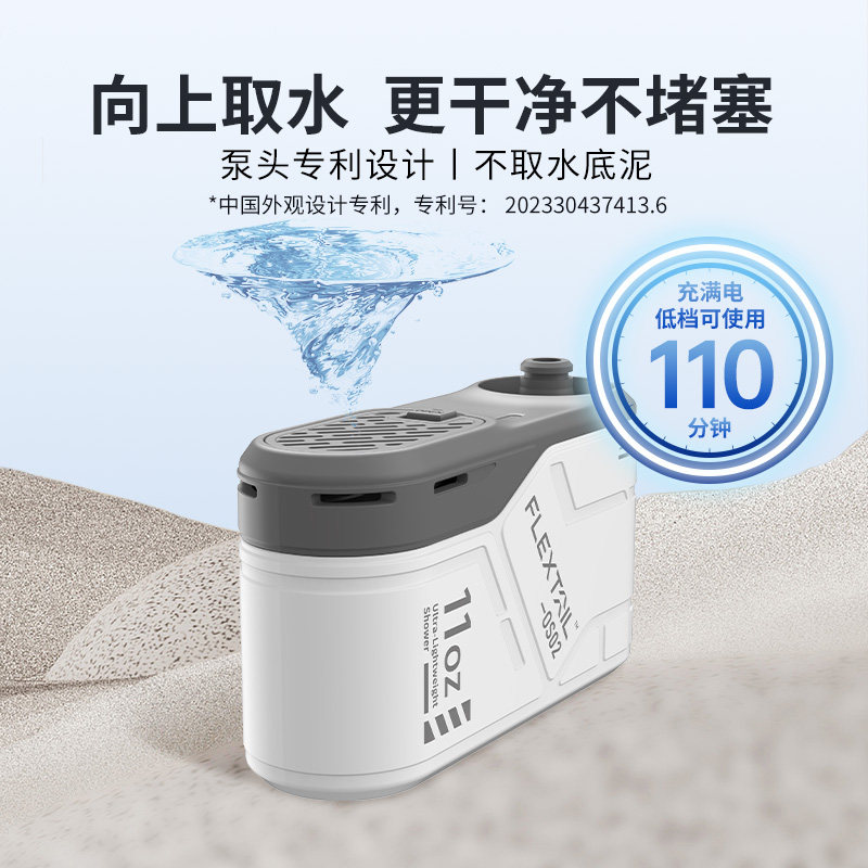 📚 FLEXTAIL鱼尾户外便携式电泵淋浴器露营电动花洒宿舍自吸洗澡神器