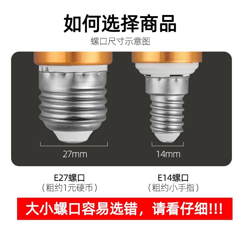 📚 螺口led灯泡节能灯超亮大小螺旋纹e27e14三色变光玉米吊灯电灯泡