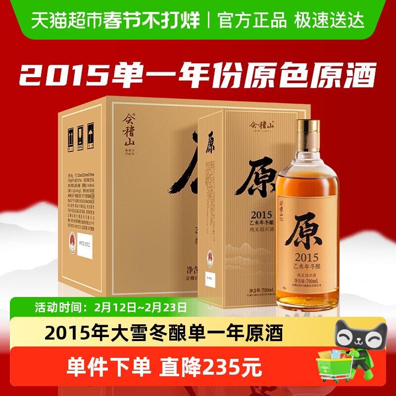 📚 【年货礼盒】会稽山绍兴黄酒2015年冬酿700ml*6原酒无焦糖色礼袋