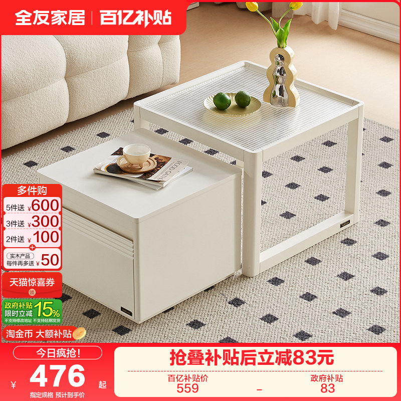 💥全友家居现代简约高矮玻璃茶几桌,券后价567!家居新风尚,你值得拥有!