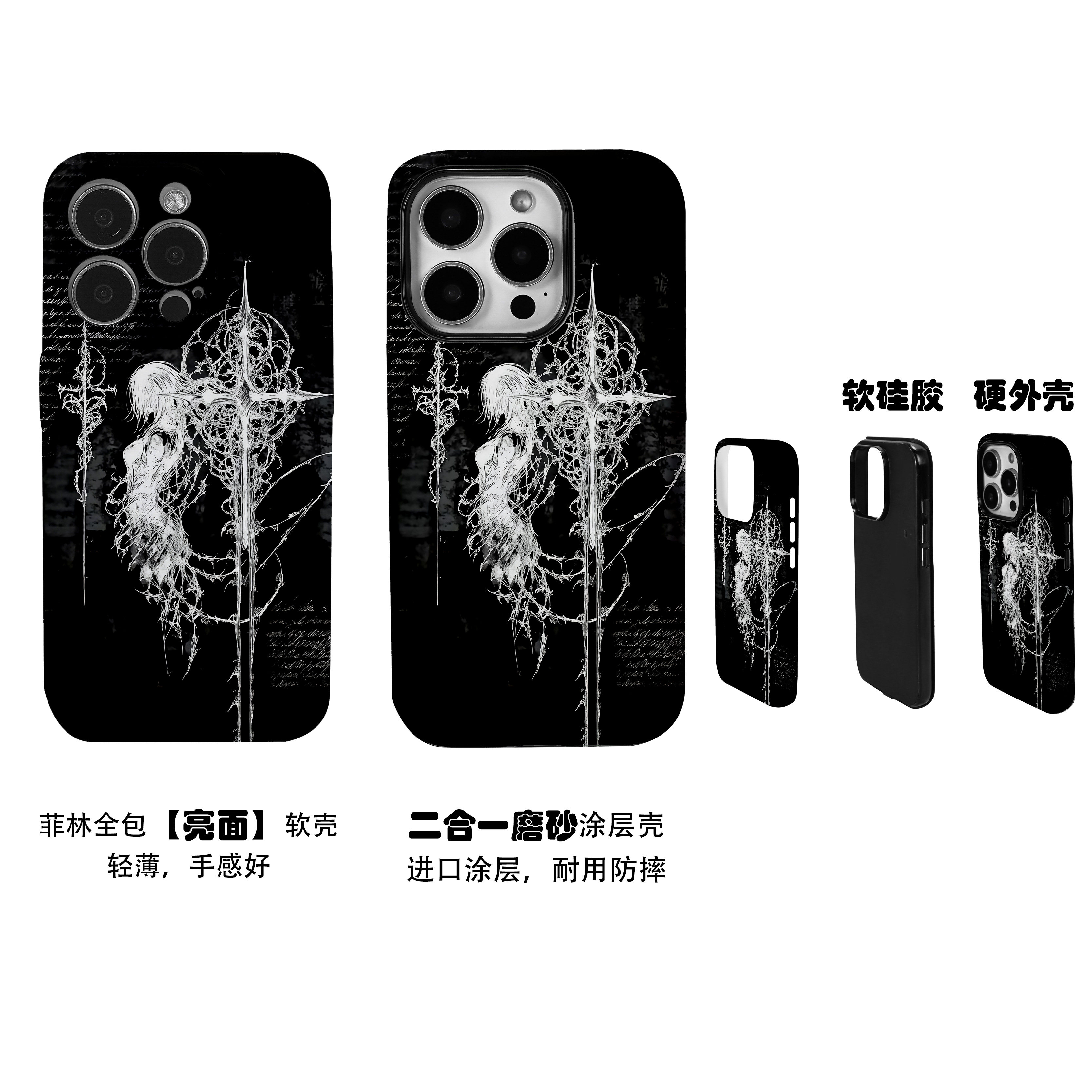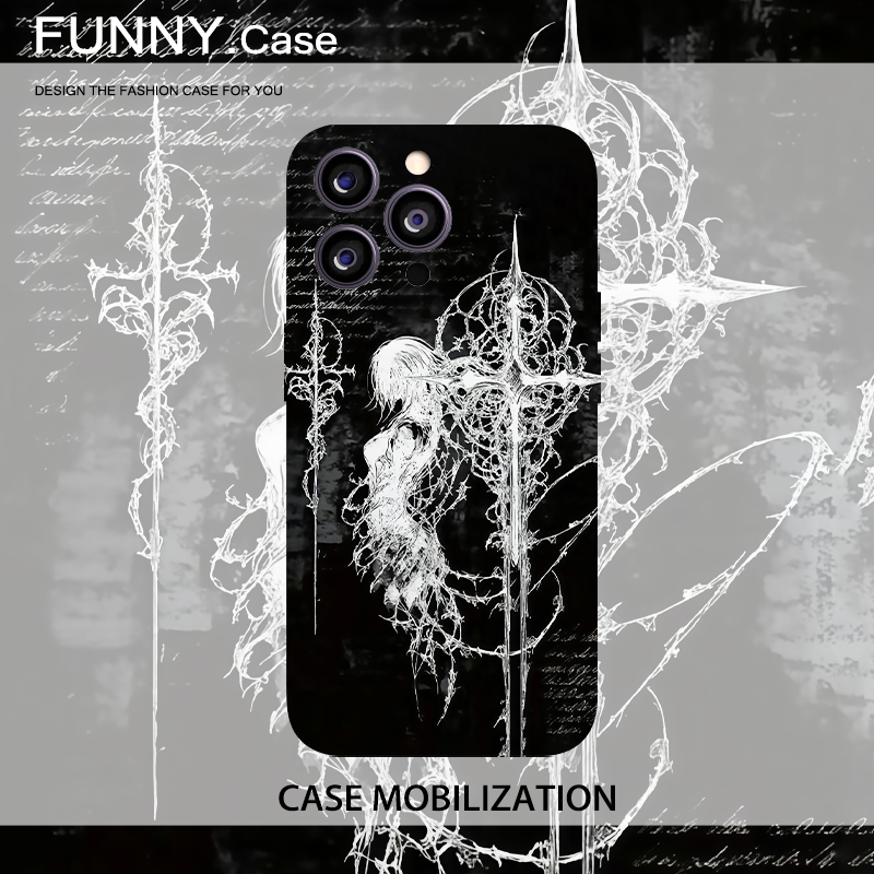 📚 十字架漫画女孩暗黑菲林全包手机壳适用苹果17nova14华为p80mate70pro小米15opporeno9vivo荣耀400iPhone16