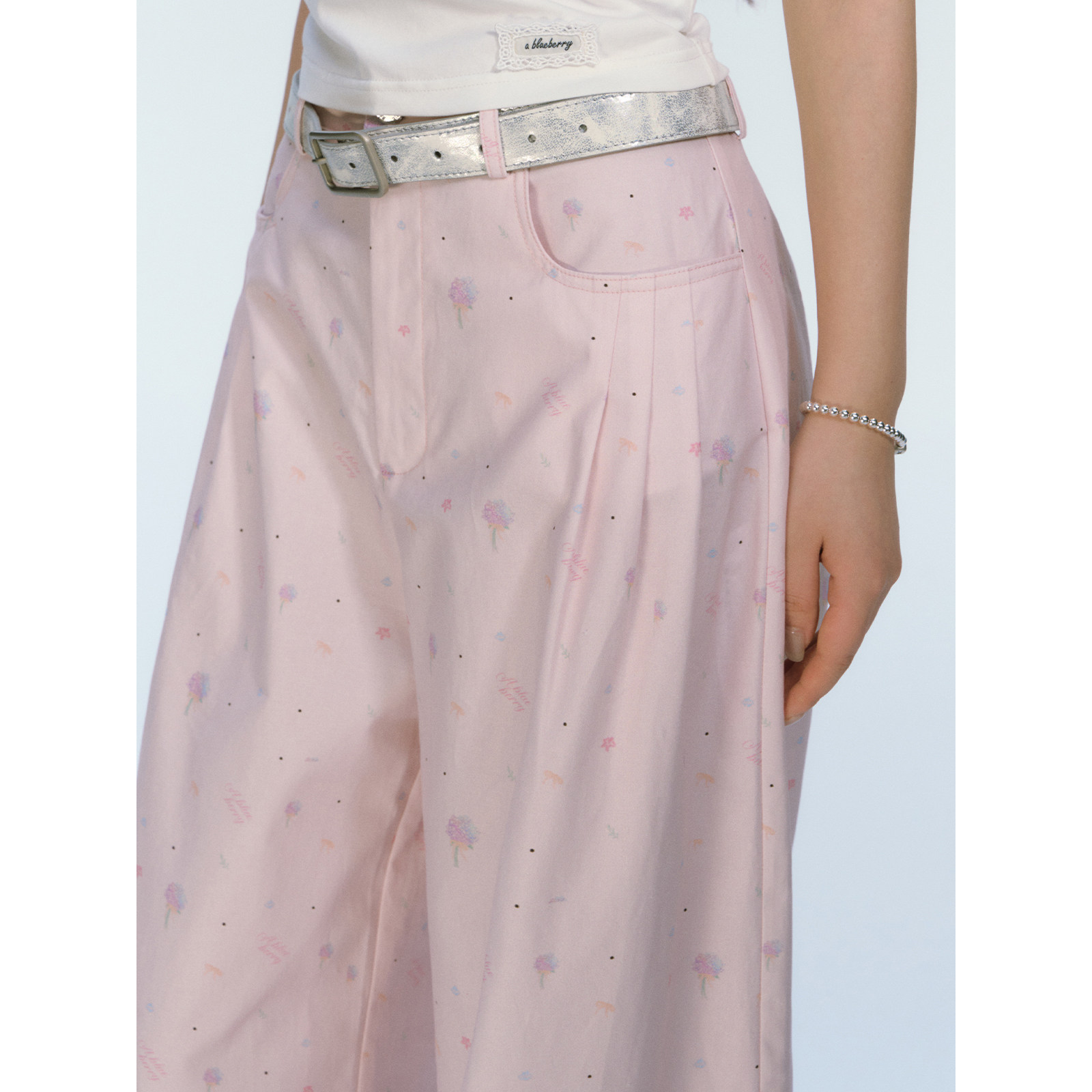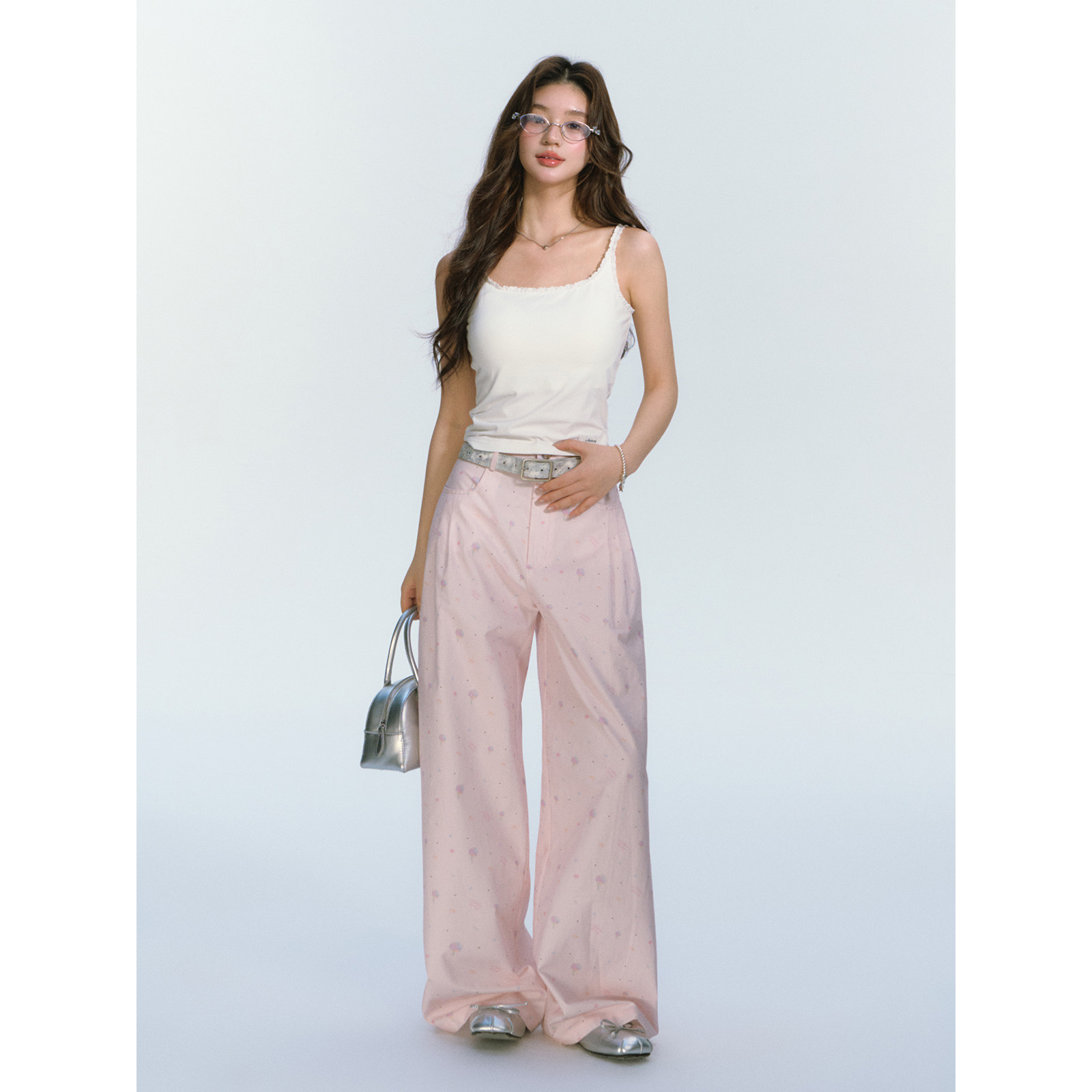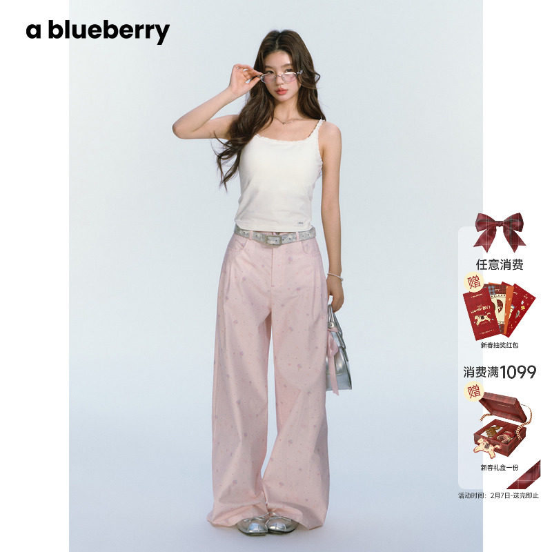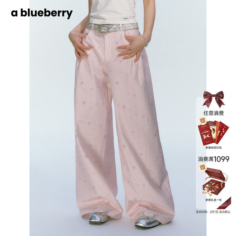 📚 徐紫茵同款ablueberry粉色碎花直筒裤女26春宽松阔腿休闲裤长裤