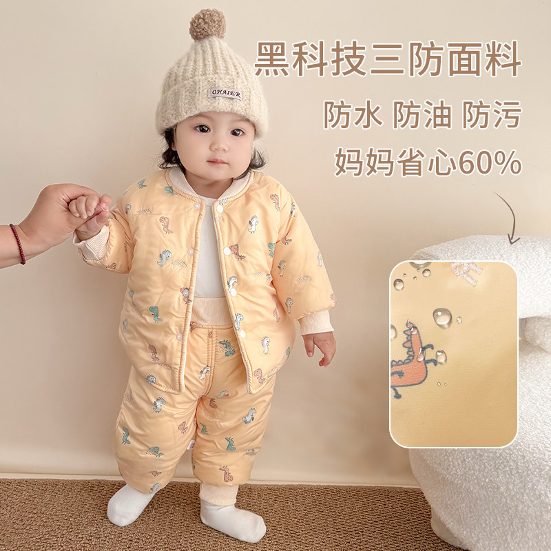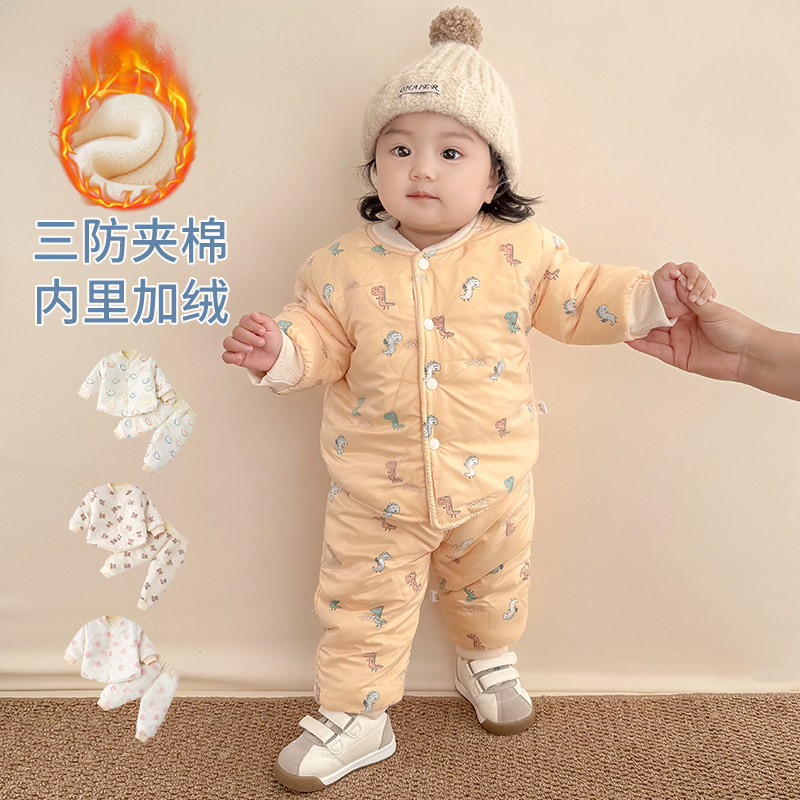 📚 宝宝冬装夹棉分体套装加厚加绒保暖棉服一岁男女童婴儿衣服两件套