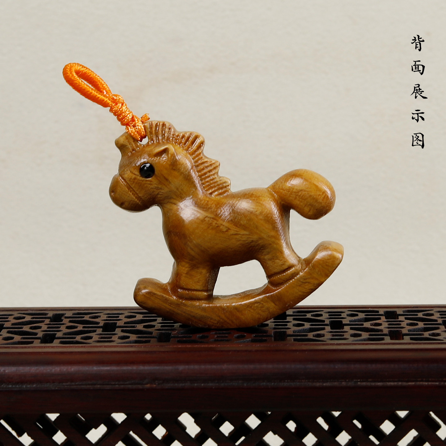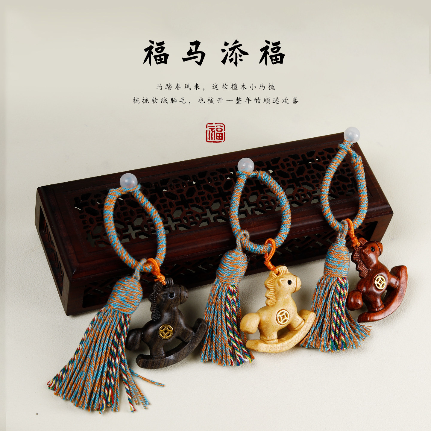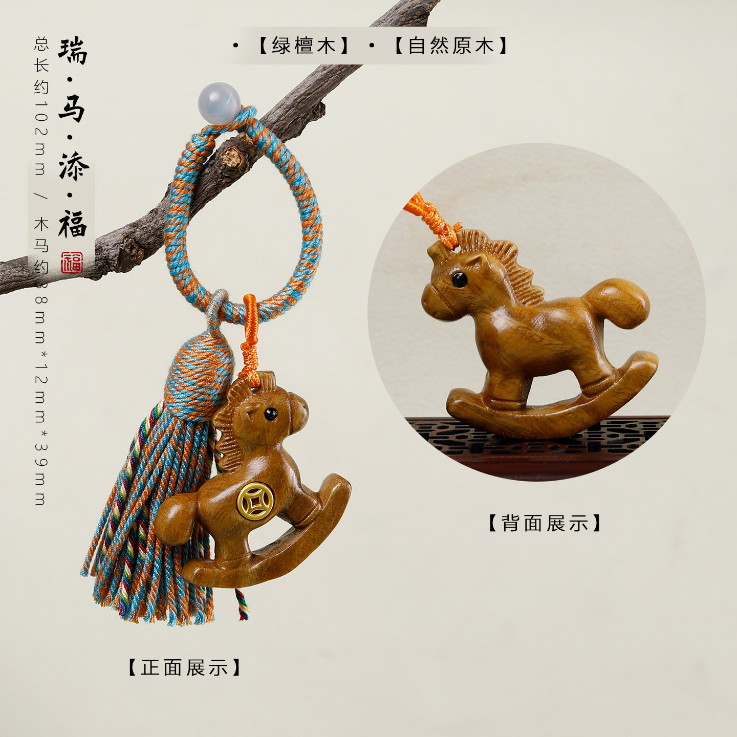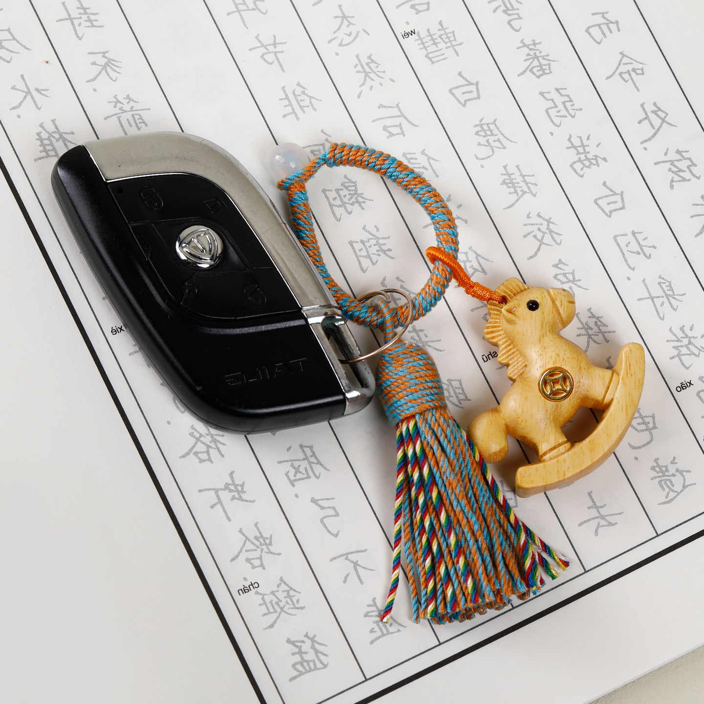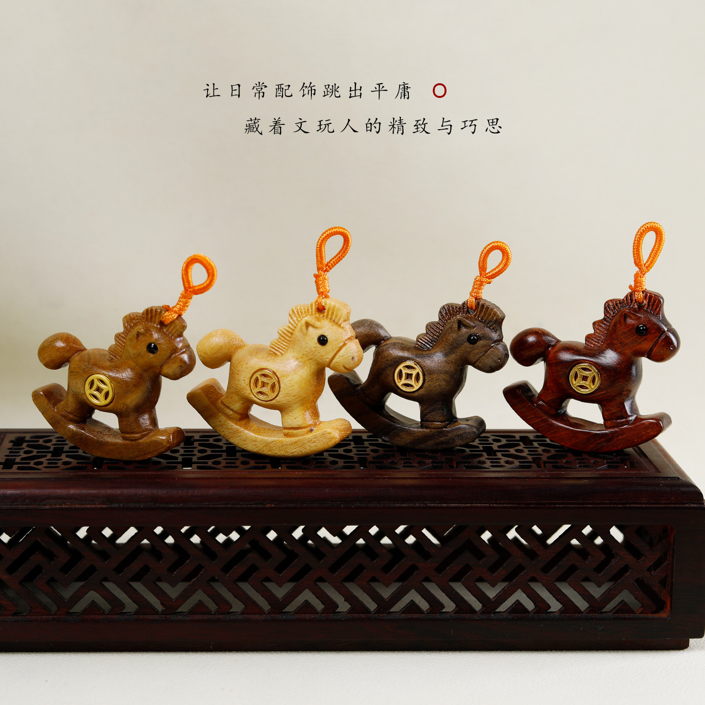 📚 实木雕刻马上有钱钥匙扣挂件摇摇马汽车挂件生肖马情侣包包挂饰