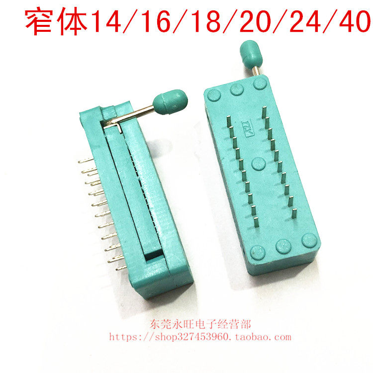 📚 绿色IC锁紧座 芯片测试座 IC插座 窄体14/16/18/20/24/40 IC底座