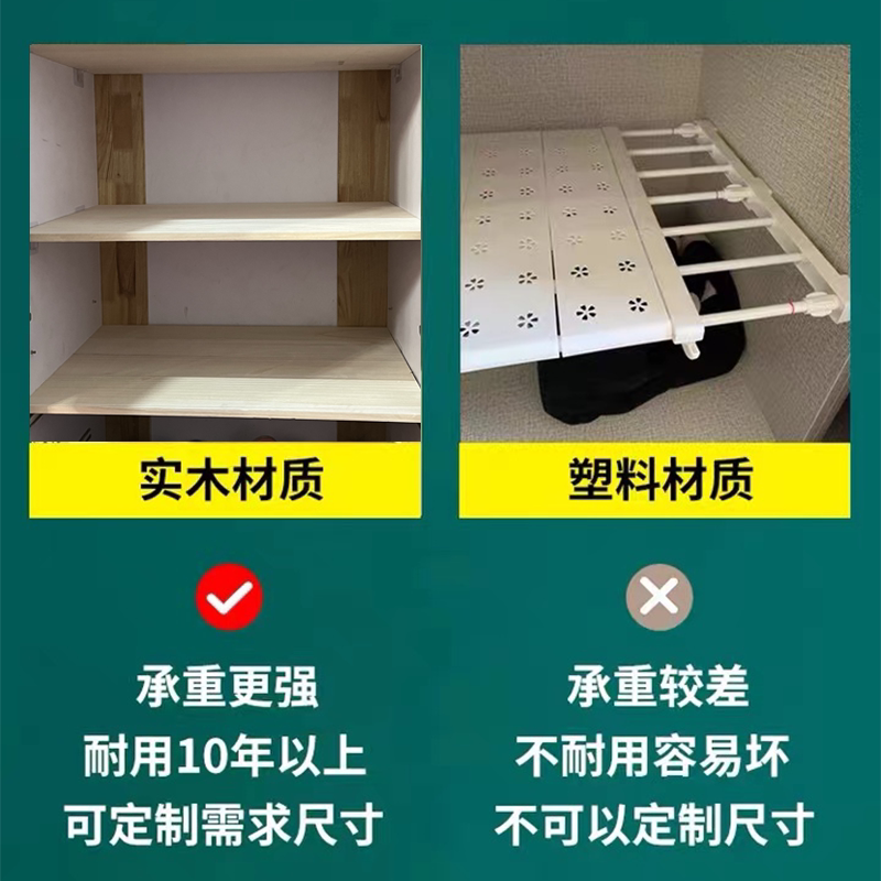 📚 衣柜分层隔板定制层板免打孔壁龛橱柜隔层鞋柜收纳分隔层板实木板