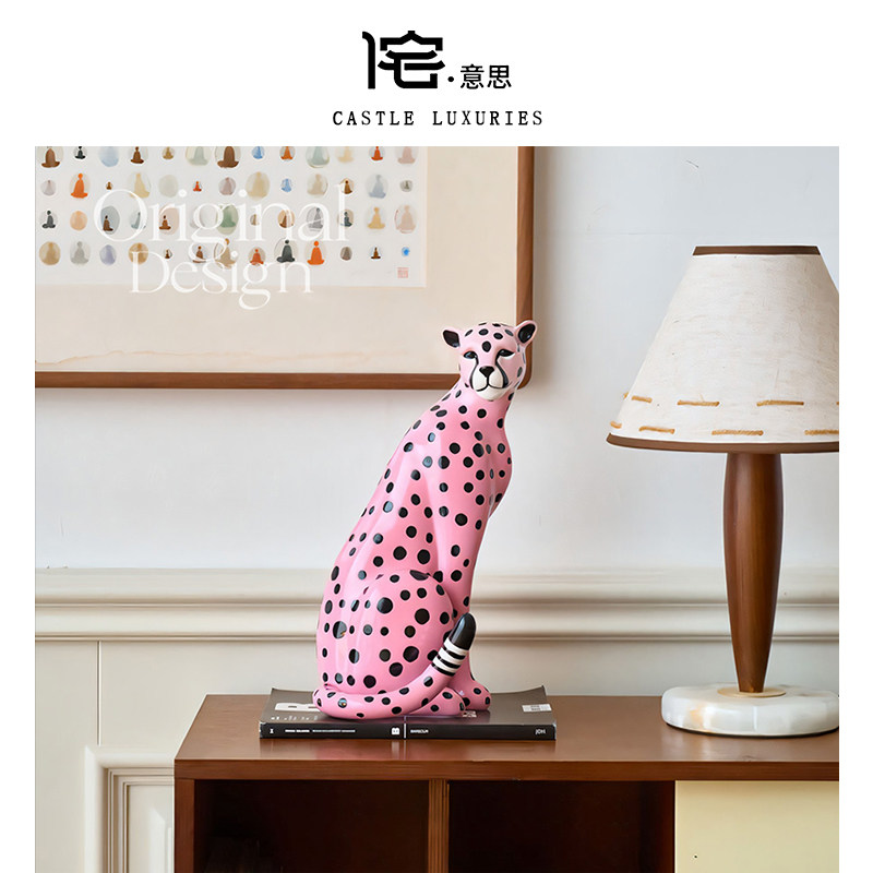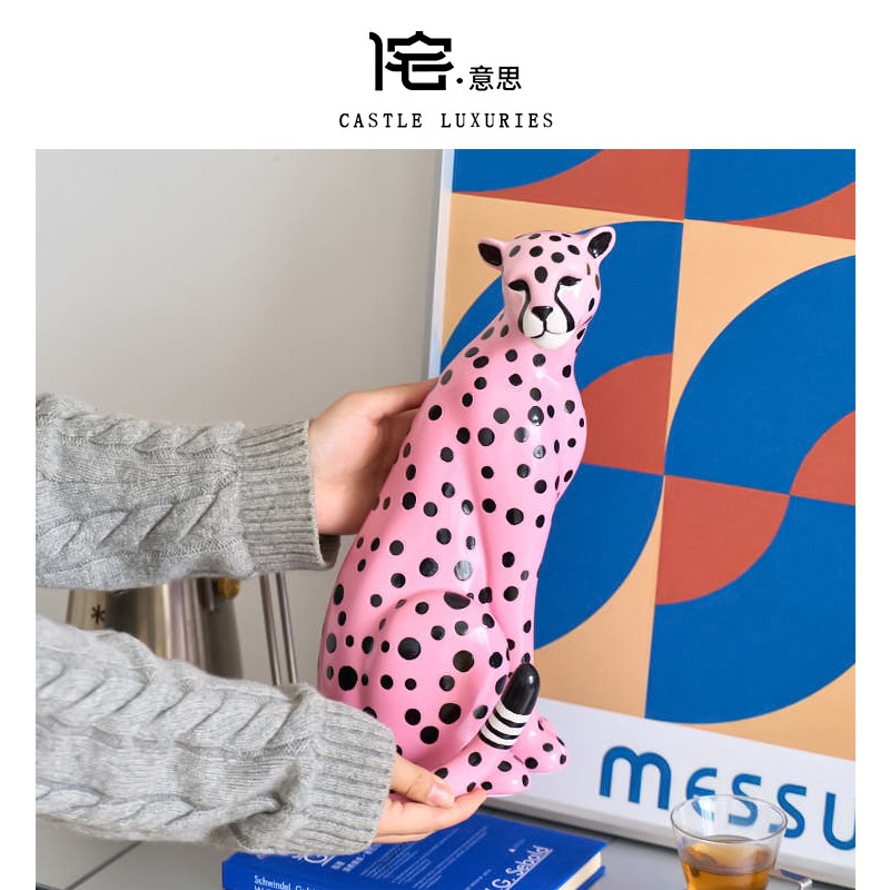 📚 侘意思 leopard粉红金钱豹招财摆件豪宅高级感装饰轻奢设计师家居